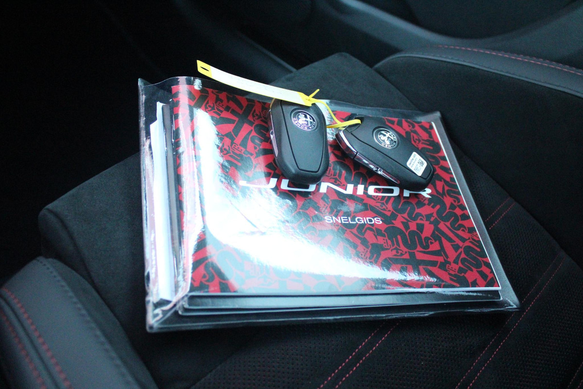 Alfa Romeo junior ELETTRICA SPECIALE 156PK 54 kWh | "SABELT" SPORTSTOELEN ELEKTRISCH VERSTELBAAR MET LEDEREN/ALCANTARA BEKLEDING | PANORAMISCH SCHUIF/KANTEL DAK | BICOLOR DAK (ZWART DAK) | WARMTEPOMP | TECHNOLOGIE PAKKET (O.A. FULL LED ADAPTIVE MATRIX KOPLAMPEN/DODEHOEK DETECTIE/DRAADLOZE TELEFOONLADER/ACHTERUITRIJ CAMERA/PARKEERSENSOREN VOOR, ACHTER,ZIJKANT) | DRAADLOZE APPLE CARPLAY/ANDROID AUTO | CLIMATE CONTROL | ELEKTRISCH BEDIENBARE ACHTERKLEP | STOEL VERWARMING | ELEKTRISCH BEDIENBARE VOORSTOEL | VERKEERSBORDEN HERKENNING | ADAPTIVE CRUISE CONTROL | KEYLESS ENTRY/START |