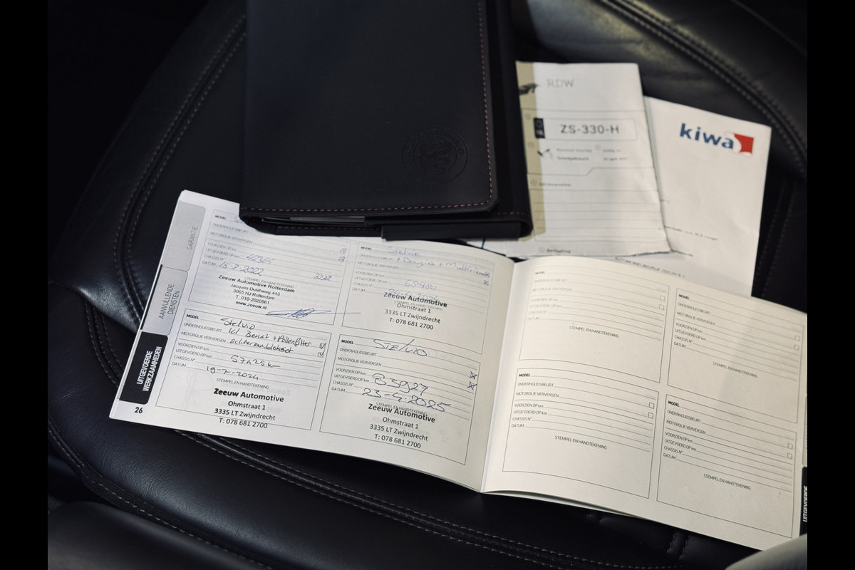 Hele fraaie Alfa Romeo Stelvio First Edition in Rosso Alfa. Origineel Nederlands geleverd, afkomstig van de eerste eigenaar en volledig aantoonbaar dealeronderhouden. Uitgerust met o.a. 20" lichtmetalen velgen, rode remklauwen, lederen bekleding, groot navigatie scherm, stoel- en stuurverwarming, elektrisch glazen panoramadak, elektrisch verstelbare stoelen met geheugen, achteruitrijcamera, elektrische achterklep, keyless entry, etc.