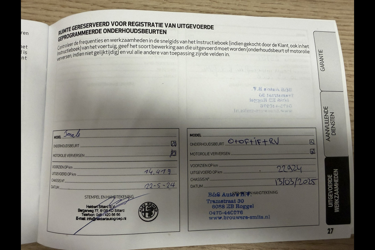 Onderhoudsboekjes: Aanwezig (dealer onderhouden)