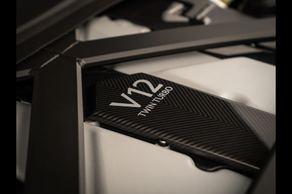 In het gestrekte front liggen 832 paarden en 1.000 Newtonmeters paraat om een geweldenaar van een 5,2 liter V12 bi-turbomotor te laten schreeuwen van genot. Het titanium uitlaatsysteem brult erop los zodra het asfalt wordt versplinterd tijdens de 0-100 km/h sprint binnen 3,3 seconden. Verbijsterend vlug. Ook de topsnelheid van 345 km/h is bizar te noemen. Sterker nog, het is een nieuw record voor serieproductieauto’s van Aston Martin. Net als de output van 160 pk per liter slagvolume. Ongekend! Een elektronisch geregeld sperdifferentieel, adaptieve dempers van Bilstein, extra dikke anti-roll bars, een aangescherpte besturing en geüpgradede koolstof-keramische remmen helpen de superkrachten verantwoord in het spoor te houden. Maar of u uzelf nog onder controle heeft na het zien van deze Minotaur Green parel…?