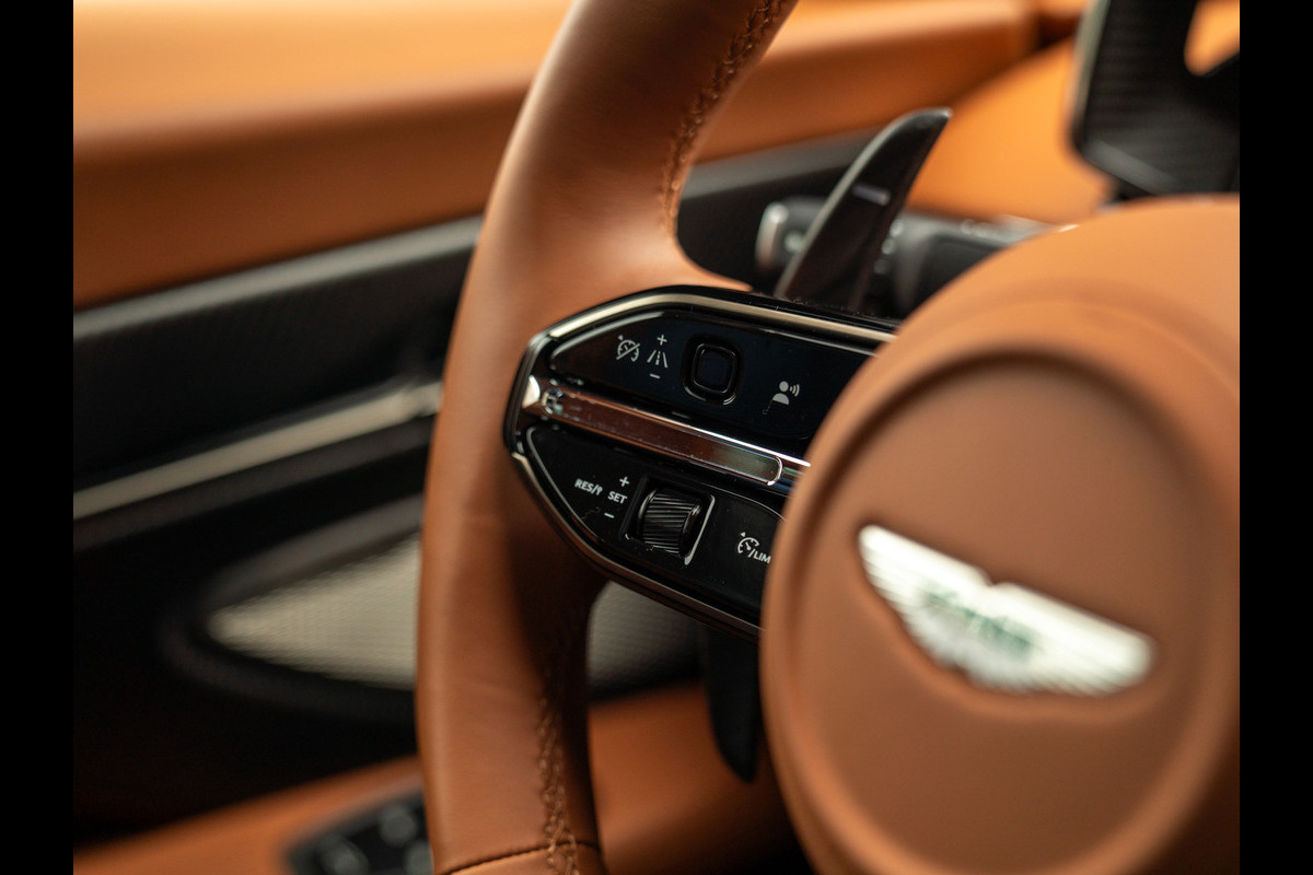 Met zo’n verpletterend mooie, waanzinnige uitstraling kan het uitrustingsniveau uiteraard niet achterblijven. De Britten begrijpen wat ervoor nodig is om de ladies en gentlemen (drivers) op hun wenken te bedienen. Bijvoorbeeld met geventileerde én verwarmde Sports Plus Seats; ze houden de inzittenden letterlijk in hun greep, ongeacht het klimaat. Ook het verwarmde sportstuur zorgt voor maximale grip bij snelle stuurbewegingen. En voor wie via het panoramadak niets dan grijze lucht ziet, is er een Aston Martin paraplu in de aanslag. Het Bowers & Wilkins audiosysteem komt daarentegen totaal niet tot z’n recht. Of u moet een juweel van een 12-cilinder het zwijgen opleggen… We don’t think so.