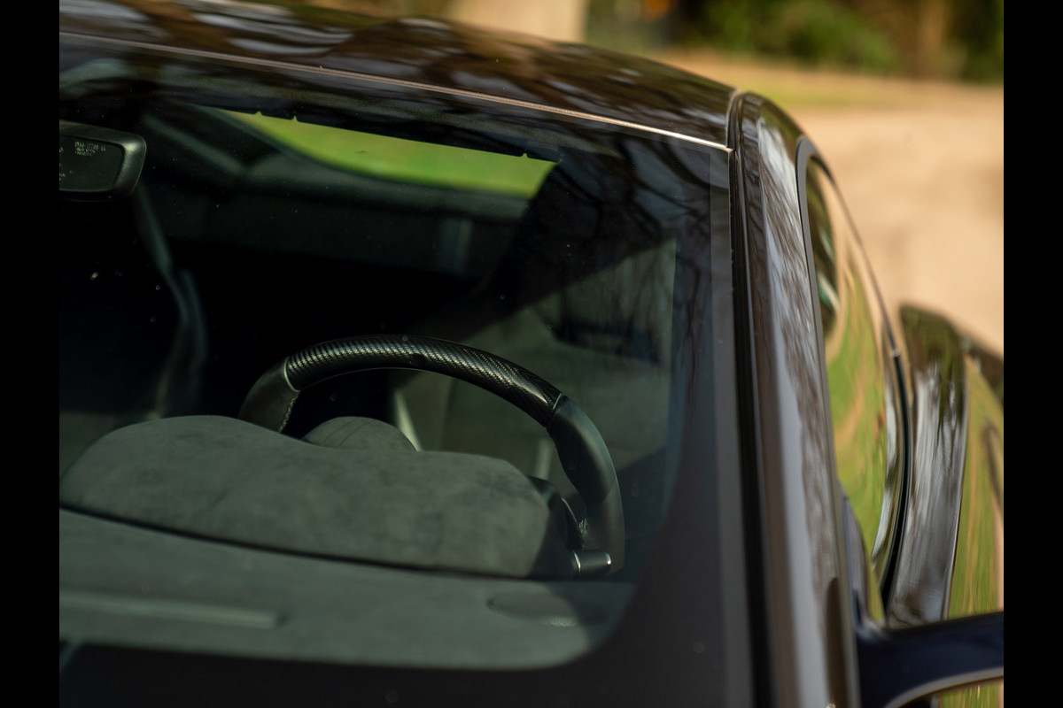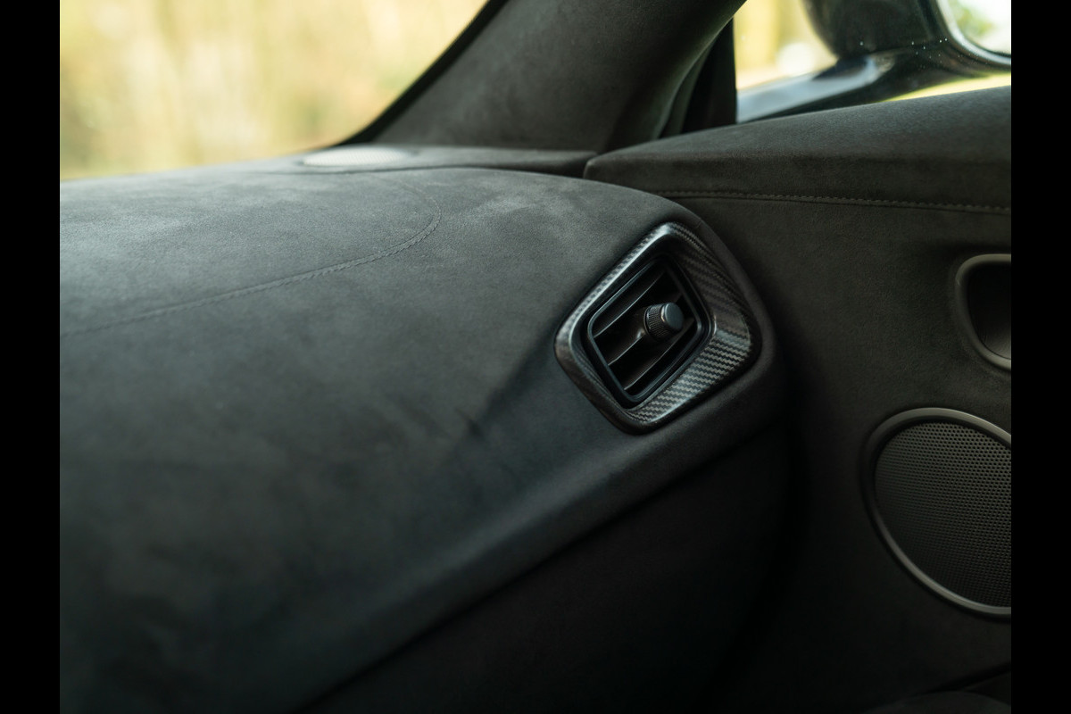 Doe het maar eens: een stijlicoon in een jas hijsen die niemand anders durft aan te trekken. Wij danken de oorspronkelijke eigenaar op onze blote knieën dat hij de gok waagde, want wat is de Aston Martin Vantage een waanzinnige beauty in deze koperkleur! Meer nog dan we van het model gewend zijn. En we zijn al zo verwend… Daar stopt het smullen echter niet, want de Vantage beschikt over vuurrode remklauwen achter 20 inch lichtgewicht “DT” wielen. Laatstgenoemde hebben een Gloss Black afwerking. In lijn met deze donkergetinte gewichtsbesparing rustten de Britten de Aston Martin ook uit met een peperduur Twill Gloss Carbon Fibre Bodypack. Dit betekent dat zowel de frontsplitter als de sideskirts én diffusor achter een koolstofvezel afwerking bevat. Jammie. Verder is de Exterior Black Pack verantwoordelijk voor extra contrasterende details, waaronder de matzwarte uitlaateindstukken. Door de Matte Black Front Grille Mesh en zwarte koplampbehuizingen kijkt de AM Vantage nog nét even een tandje agressiever de wereld in. Niet dat hij het nodig had…
