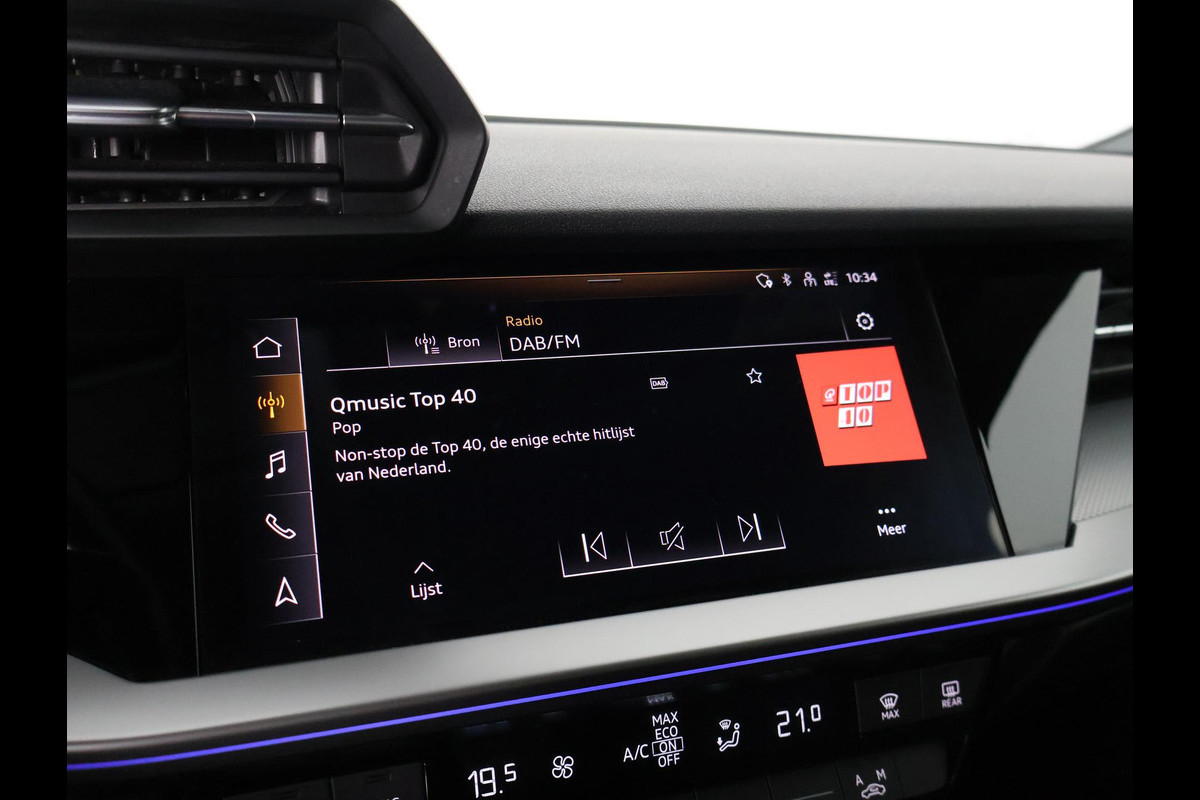 Ontdek de digitale mobiliteitswereld, met zijn dashboard dat alle noodzakelijke informatie projecteert om uw reis comfortabel en veilig te maken. Adaptive cruise control houdt de ingestelde snelheid vast en houdt automatisch afstand tot uw voorligger. Waar u zelf ook bent, u staat altijd in contact met de auto via de app op uw smartphone. Zo controleert u uiteenlopende functies, ook op afstand. Een goede veiligheidsvoorziening is de stuurbediening voor belangrijke functies. De auto is natuurlijk voorzien van een full map navigatiesysteem en het audiosysteem biedt glasheldere geluidskwaliteit dankzij DAB-ontvangst. Nieuwe smartphones hebben geen snoeren meer nodig om op te laden. Daarom heeft deze Audi A3 Limousine een draadloze oplaadmogelijkheid voor telefoons waarmee u onderweg simpel en effectief voor een volle accu zorgt. U bent in deze Audi ook voorzien van electronic climate control, sportstuur met schakelpaddels, parkeersensoren achter, regensensor, automatisch dimmende binnenspiegel en centrale deurvergrendeling met afstandsbediening.