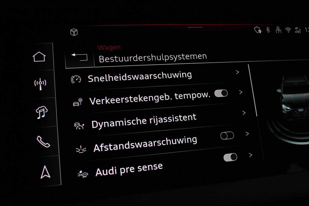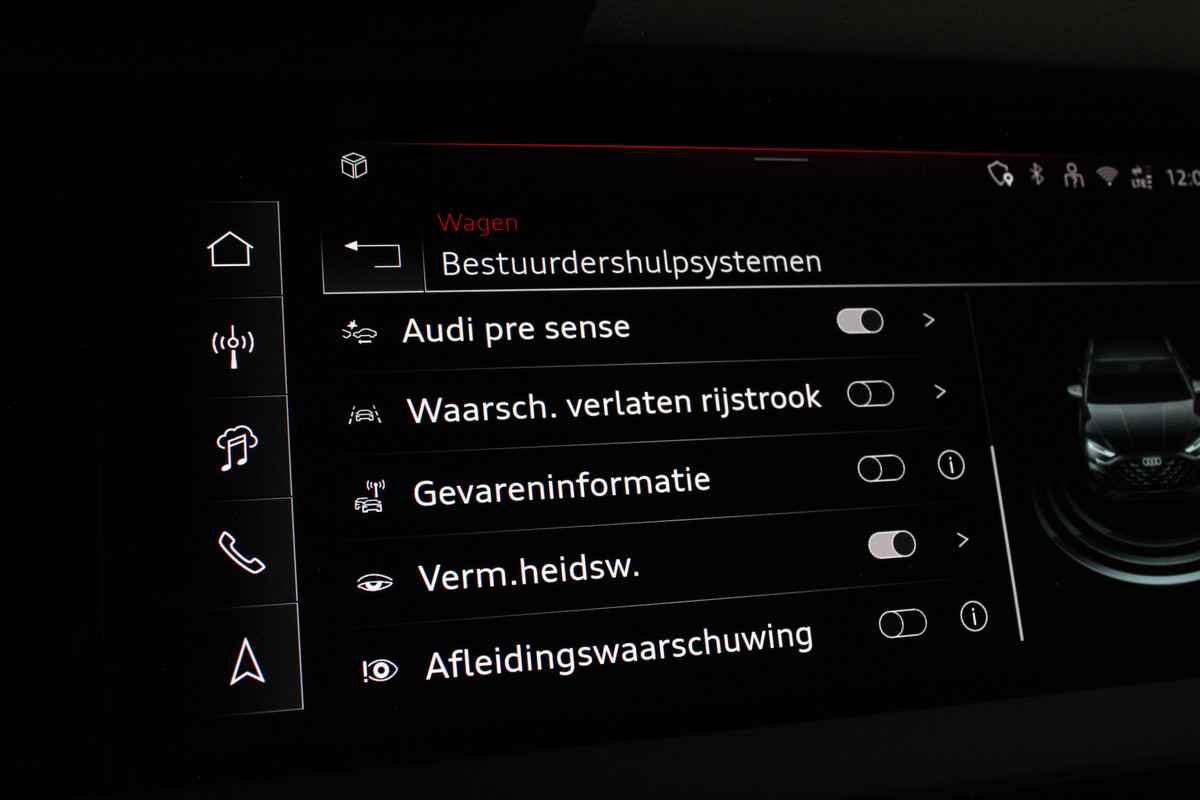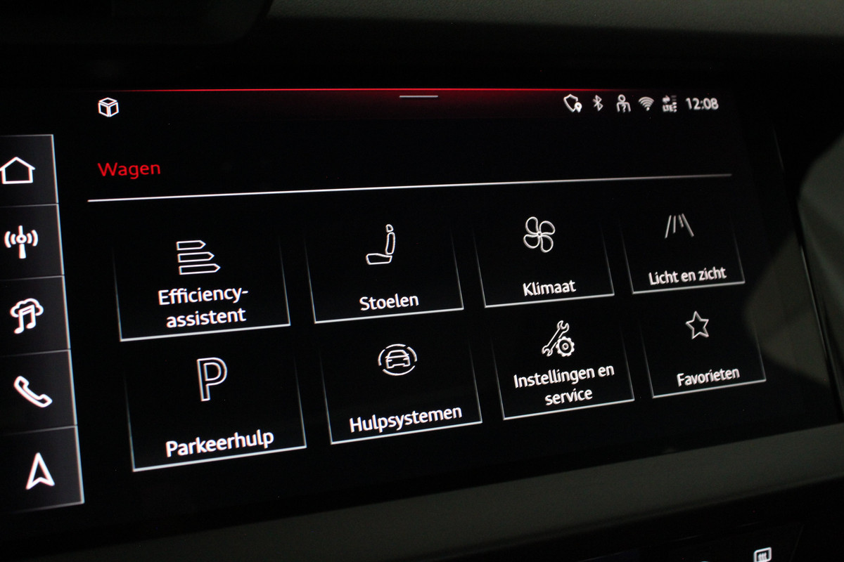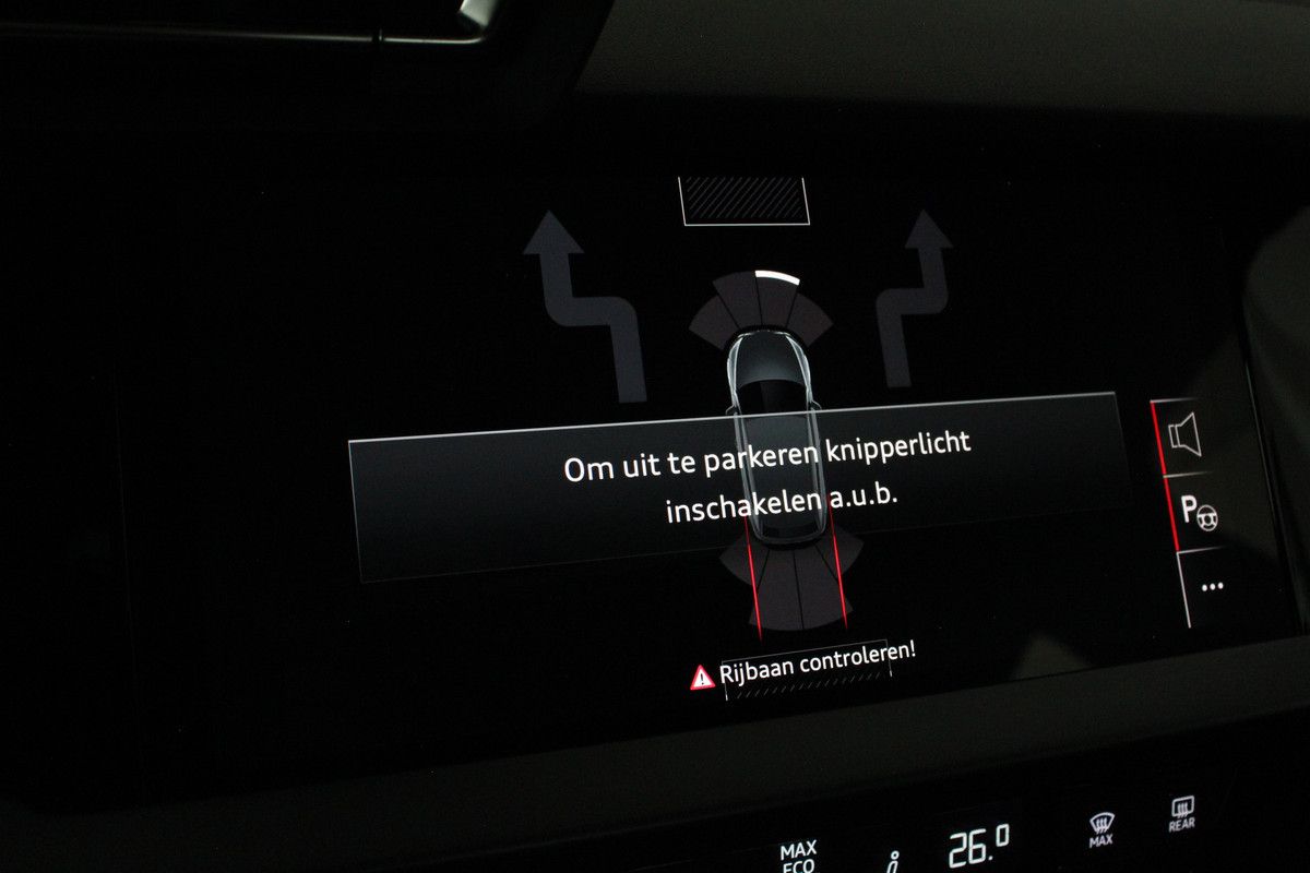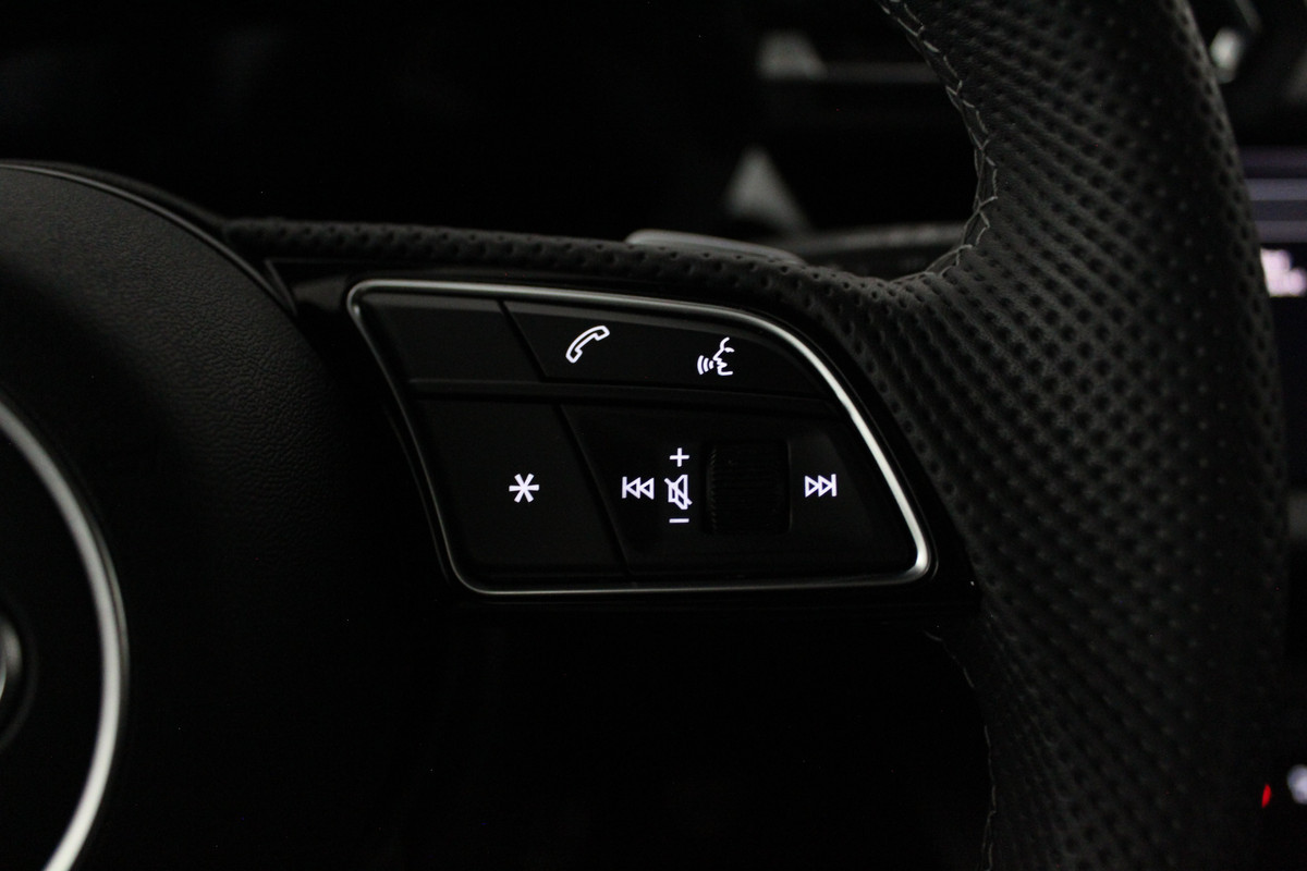 Het interieur ademt sportiviteit en luxe. U neemt plaats in de sportstoelen met S line logo, bekleed met een stijlvolle stof/kunstlederen combinatie en voorzien van stoelverwarming. De donkere hemelbekleding, aluminium interieuraccenten en het afgevlakte lederen sportstuur met schakelpeddels versterken het sportieve karakter. Dankzij de Audi Virtual Cockpit Plus en het navigatiesysteem full map heeft u altijd alle informatie overzichtelijk in beeld, volledig naar wens in te stellen.