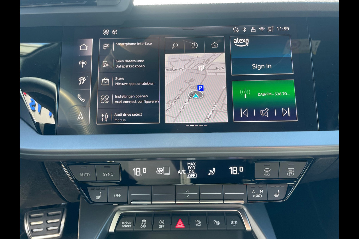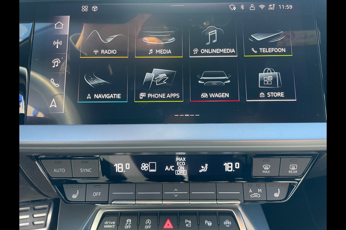 Nekkramp en verdraaide schouders zijn verleden tijd. Door de achteruitrijcamera is iedere meter achter de auto glashelder in beeld. Appen met uw auto? Geen probleem. U kunt van overal contact opnemen, de functies controleren en activeren. U bedient 'm met remote services. De sensatie van superieur geluid wordt geleverd door het high performance audiosysteem. Nieuwe smartphones hebben geen snoeren meer nodig om op te laden. Daarom heeft deze Audi A3 Sportback een draadloze oplaadmogelijkheid voor telefoons waarmee u onderweg simpel en effectief voor een volle accu zorgt. In een auto als deze kunt u niet zonder automatische airconditioning, zodat de temperatuur altijd goed is. Extra opties op deze auto zijn: dashboard met spraakbediening, origineel navigatiesysteem, sportstuur met schakelpaddels, DAB ontvangst, regensensor en cruise control.