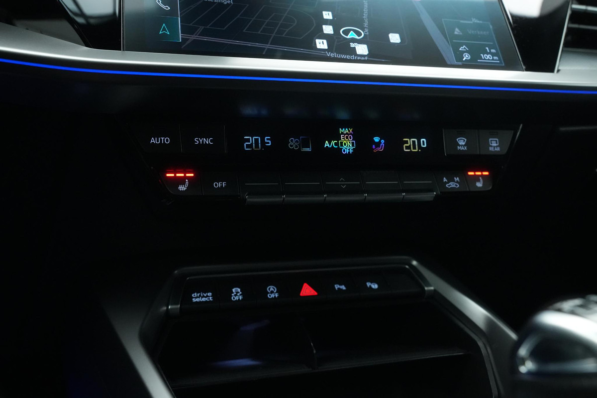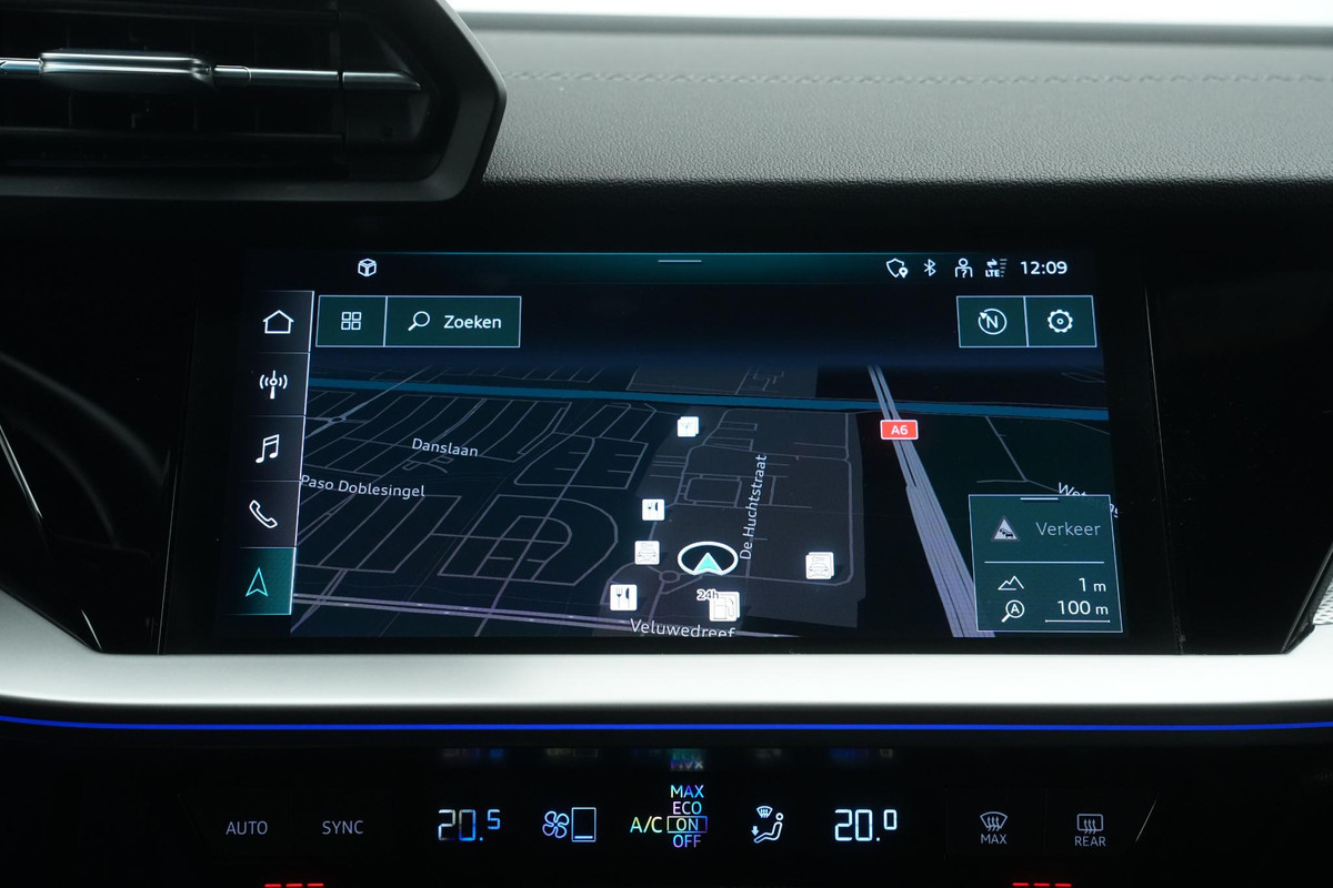 Pragmatisch en veilig als deze auto is, beschikt hij over diverse veiligheidssystemen. De actuele snelheidslimiet, een inhaalverbod en andere verkeersborden; de verkeersborddetectie ondersteunt u tijdens elke rit. Het Lane-keeping systeem zorgt voor een automatisch constante positie binnen de rijstrook. Afdwalen is uitgesloten. Om de veiligheid extra te vergroten, heeft deze Audi A3 Sportback Brake Assist. In een noodsituatie treedt dit hulpremsysteem in werking wanneer extra remkracht nodig is. Verder is deze auto uitgerust met dodehoekdetectie, hill hold functie en bandenspanningcontrolesysteem.