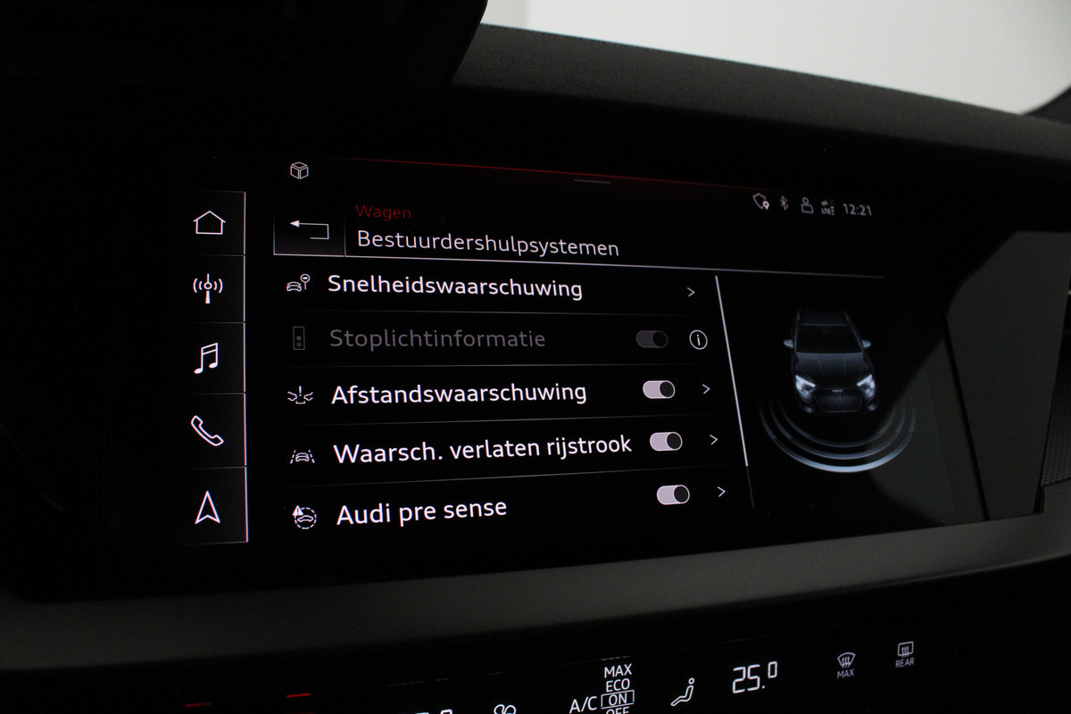 Op het gebied van veiligheid en zicht is deze Audi eveneens royaal uitgerust. De Matrix LED-koplampen zorgen voor optimaal zicht onder alle omstandigheden, ondersteund door de grootlichtassistent die automatisch inspeelt op het verkeer. Parkeersensoren aan de achterzijde maken manoeuvreren eenvoudig en ontspannen, zelfs in krappe situaties. De dakspoiler en het extra getinte glas benadrukken niet alleen het sportieve design, maar dragen ook bij aan comfort en uitstraling.