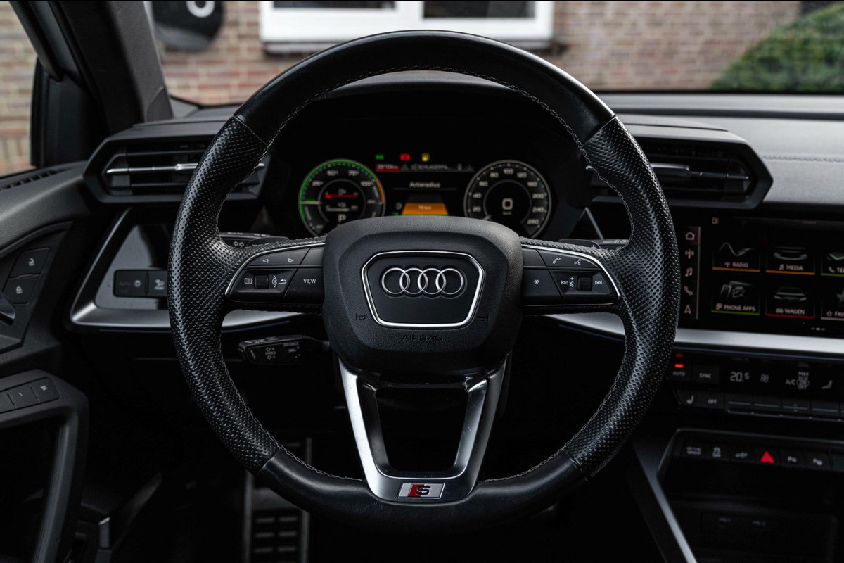 In nieuwstaat verkerende Audi A3 Sportback 40 TFSI e S Edition met gecombineerd 204 PK! Afkomstig van de 2e eigenaar en volledig dealer onderhouden! Registratiedatum 16-12-2020. Perfect samengesteld met nagenoeg alle opties! o.a; 18'' Lm-velgen, S-Line Interieur - Exterieur - Onderstel, Black Optic ( o.a zwarte spiegels ), Achteruitrijcamera, Lane-Assist, Adaptive Cruise-Control, Side-Assist, Matrix LED koplampen, LED achterlichten, Dynamisch knipperlicht voor en achterzijde, Elektrisch inklapbare buitenspiegels, Getint glas, Stoelverwarming, Elektrische achterklep, Interieur voor verwarming installatie, Bang en Olufsen Audio, Sfeerverlichting, Parkeersensoren voor en achter, Keyless Entry - Start, Leder/Alcantara sportstoelen, Elektrisch verstelbare bestuurdersstoel met geheugen, Multifunctioneel Lederen stuurwiel met flippers, Afneembare Trekhaak af fabriek, Etc. Etc.