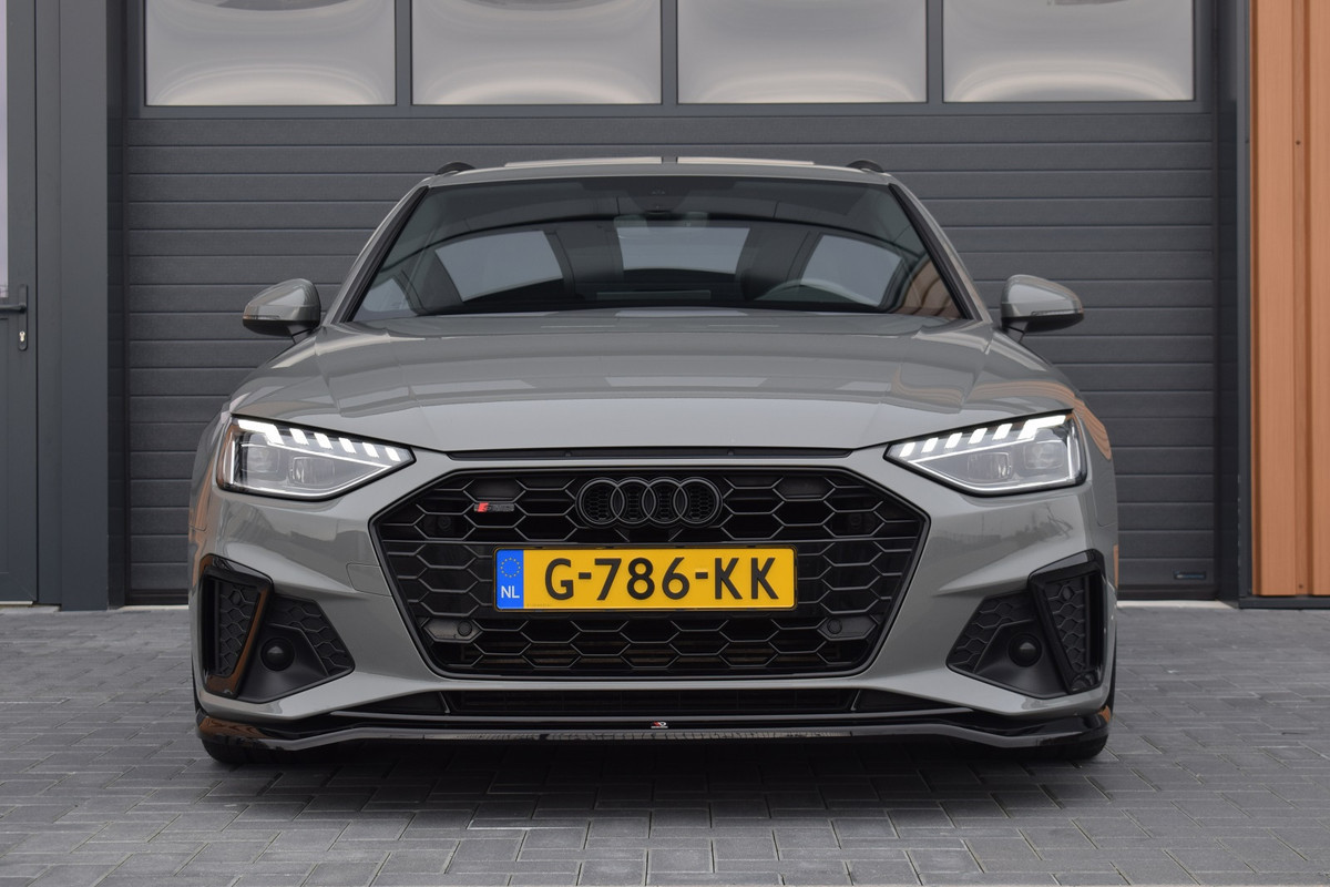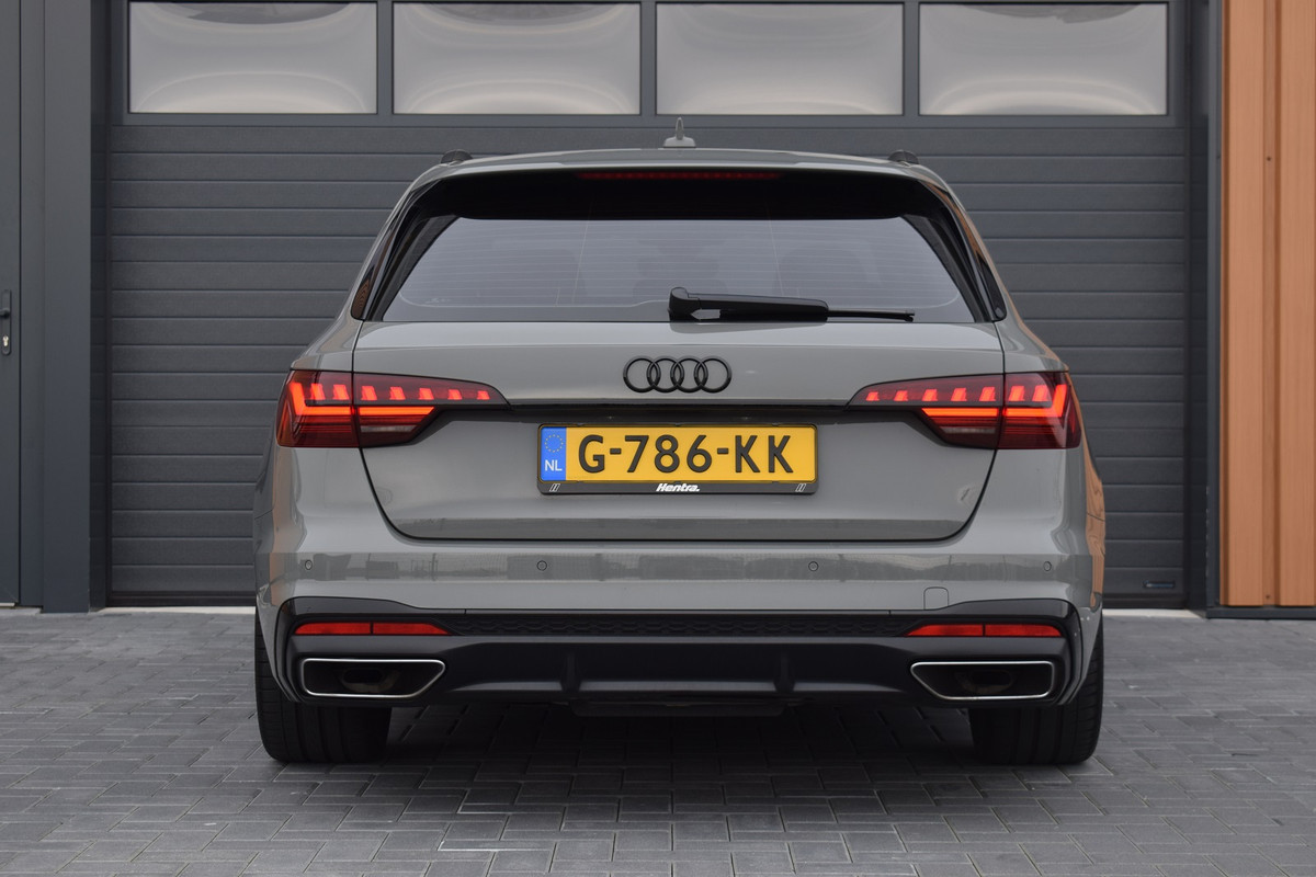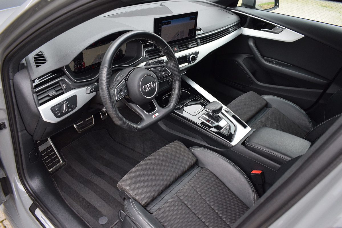 Audi A4 Avant 35 TFSI S-tronic S-line. Uitgevoerd met o.a.: Panoramadak, Virtual Cockpit, Climate control met airco bediening achter, Cruise control, Lichtmetalen velgen 19", Multifunctioneel lederen sportstuur met afgevlakte onderzijde, Aluminium pedalen, Hoogglans zwart optiekpakket incl. zwarte logo's, LED koplampen en achterlichten, Parkeersensoren achter, Elektrisch bedienbare achterklep, Wegklapbare trekhaak. Verder is deze A4 voorzien van een KW schroefset en een Maxton design voorspoiler.