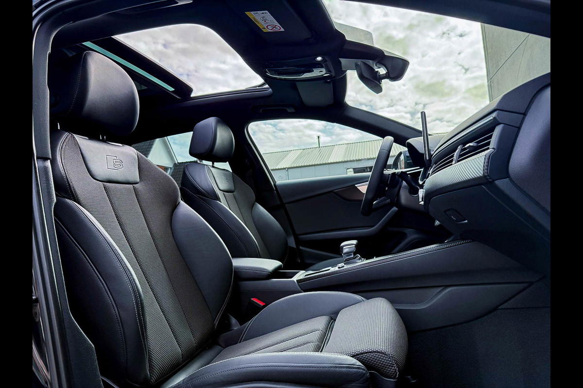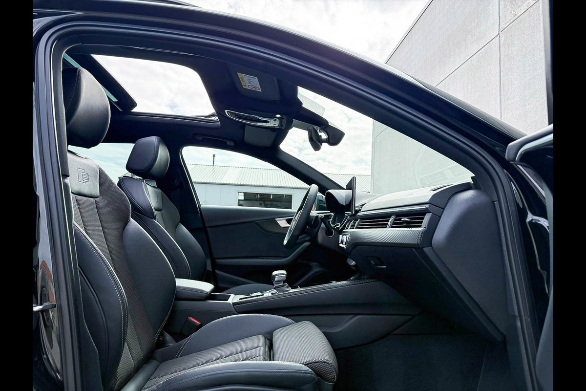 Voorzien van opties zoals: NIEUW MODEL 2023!|S-Line interieur|S-Line exterieur|Audi Exclusive|S-Line Mythos Black Pearl Metallic|2.0TFSI 180kw/245pk en 420Nm|S-Tronic Automaat|Panoramisch glazen schuif-/kanteldak|Elektrisch bedienbare zonwering panoramadak|Virtual Cockpit Plus|Premium leder pakket Audi Exclusive Alcantara interieur afwerking|Zwart Half Valcona lederen S-Line Sportstoelen incl. Grijze stiksels|Stoelverwarming|Geperforeerd afgevlakt lederen 3-spaaks S-line Sportstuurwiel & Grijze stiksels|Audi Exclusive Alcantara airbag met Grijs stiksel|F1 schakelflippers|Rear View / Achteruitrijcamera|Parkeersensoren voor- & achterzijde|Parkeer-assistent|Audi Drive Select - Instelbare rijprofielinstellingen|LED dagrijverlichting|HD Matrix dynamische LED koplampen met lichtanimatie|LED achterlichten|3D / Dynamische knipperlichten|Cruise Control|Audi Pre Sense|Attention Assist|Grootlichtassist|Voice Control|Elektrisch bedienbare achterklep|Afstandswaarschuwing|MMI Plus groot scherm|Navigatiesysteem via APP|Uitgebreide boordcomputer|Bluetooth|Audi Premium Sound incl. Subwoofer|DAB+ / Digital Audio Broadcasting|Audi Connect Key|APP Connect|Apple CarPlay / Android Auto|Keyless Go|17inch LM Audi S-line velgen|*Optioneel: Getoonde 20inch RS Black Performance velgen|Coming-/Leaving Home|Licht- & Regensensor|Ambiance sfeerverlichting|Climate Control 3-zones|Aluminium interieurafwerking|Spiegelpakket - Elektrisch verwb.-/verstelb. + inklapbare buitenspiegels|Carbonlook interieur pakket|Zwarte hemelbekleding|Automatisch dimmende binnenspiegel & buitenspiegels|Elektrische ramen voor- & achterzijde|Warmtewerende voorruit|RVS Sportpedalen|RVS S-line instaplijsten incl. LED verlichting|Zwarte Audi emblemen rondom|Black Pack Plus / Zwart optiekpakket Plus|Hoogglans zwarte grille|Hoogglans zwarte raamomlijsting|Hoogglans zwarte Audi emblemen|Hoogglans zwarte sideskirts|Hoogglans zwarte buitenspiegels|Rode Audi Sport S remklauwen|Privacy Glass|Audi RS4 Design Black diffuser + Zwarte uitlaat sierstukken|Alarm Fabrieksaf|