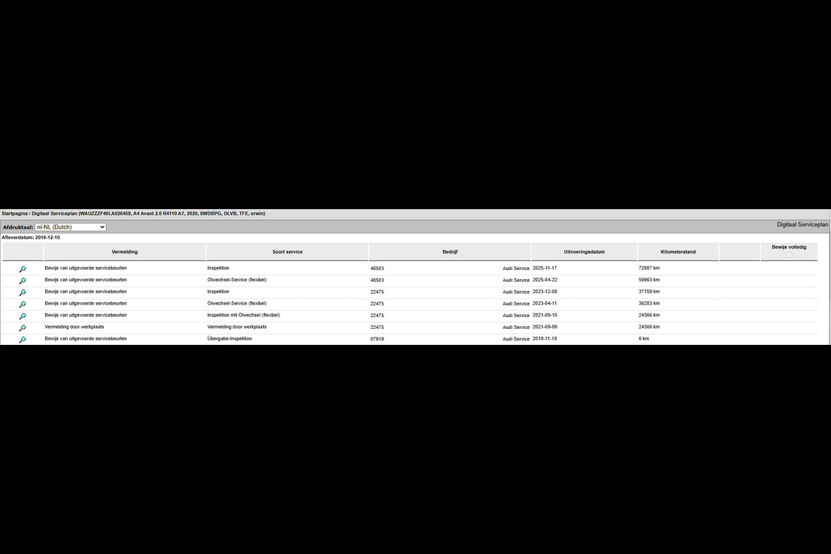 De volledige onderhoudshistorie is digitaal inzichtelijk (via dealerdata) en toegevoegd bij de advertentiefoto’s, zodat de historie transparant en controleerbaar is.