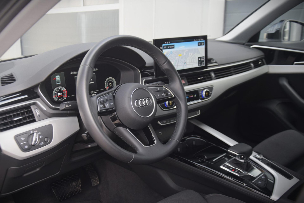 Natuurlijk brengt het digitale dashboard alle ritinformatie perfect in beeld. Maar ook communicatie, navigatie en tal van andere functies zijn permanent te volgen. Appen met uw auto? Geen probleem. U kunt van overal contact opnemen, de functies controleren en activeren. U bedient 'm met remote services. De luidsprekers van het high performance audiosysteem omringen u met een uitgebalanceerd geluid. Boem is ho? Niet bij deze Audi A4 Limousine. De piepjes van de parkeersensoren waarschuwen u op tijd voor obstakels. Relaxt rijden is meegeleverd in de vorm van cruise control. Met houten stuurwiel, airconditioning, automatisch dimmende binnenspiegel, isofix-aansluiting en bestuurders-informatie-systeem is deze auto helemaal compleet.
