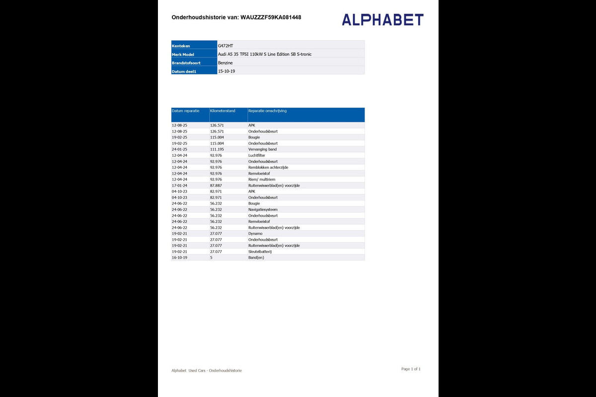 - Volledige dealeronderhoudshistorie beschikbaar