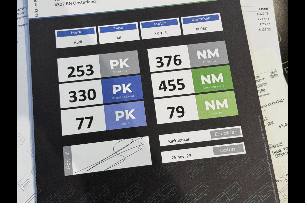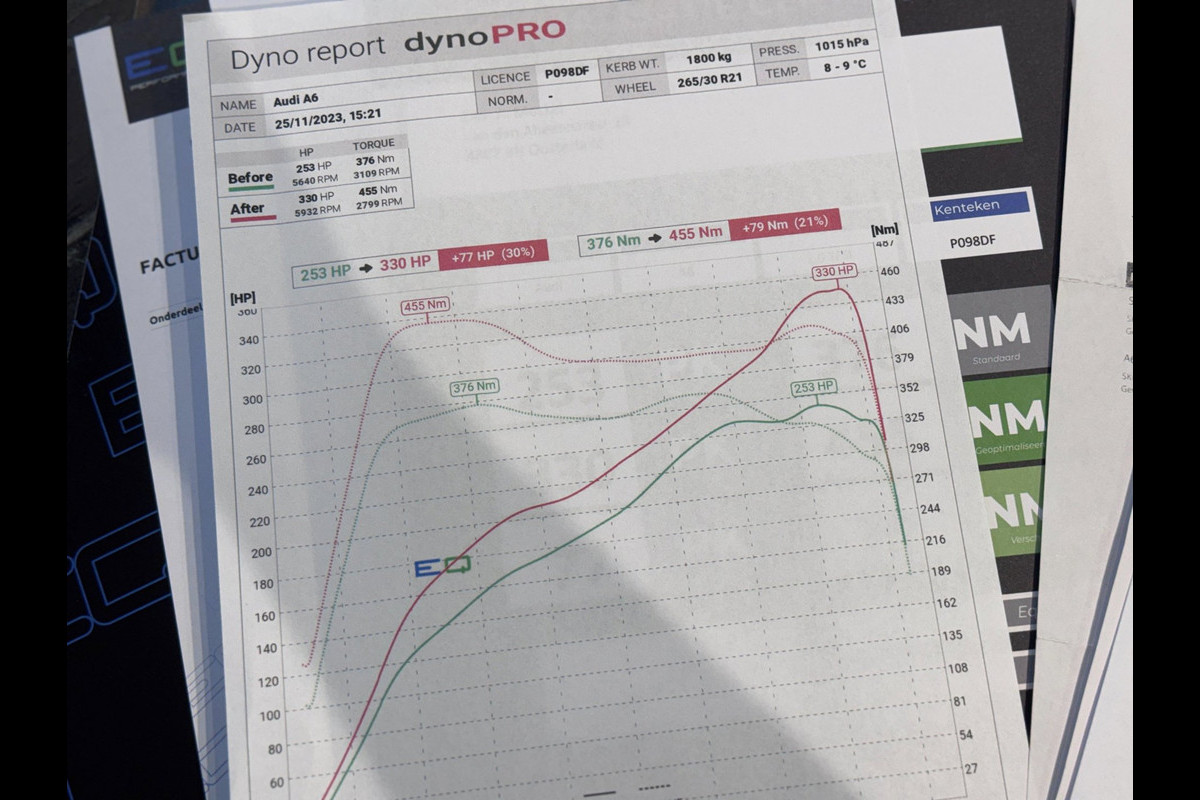 Af fabriek heeft de auto 253 PK, deze is geoptimaliseerd door EQ Performance naar 330 PK / 445 NM. Dyno bank uitdraai is aanwezig, geen goedkope tuning!