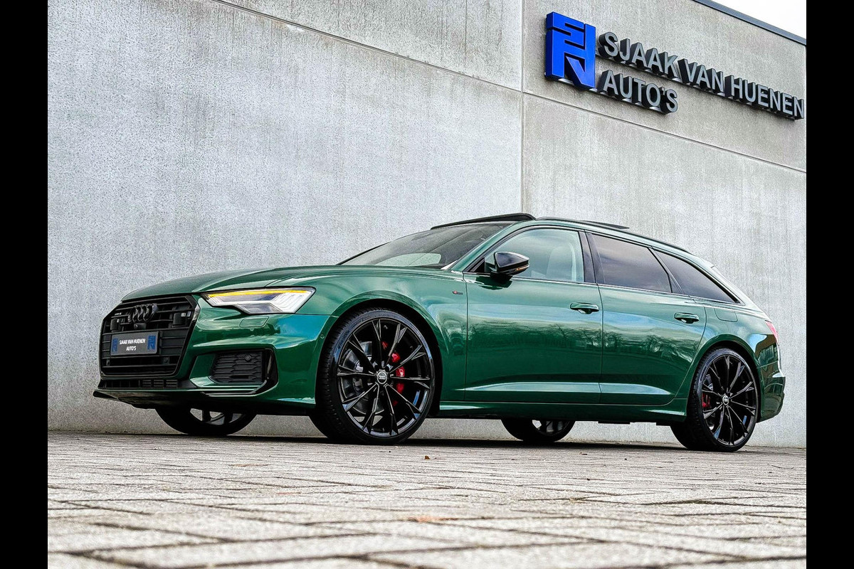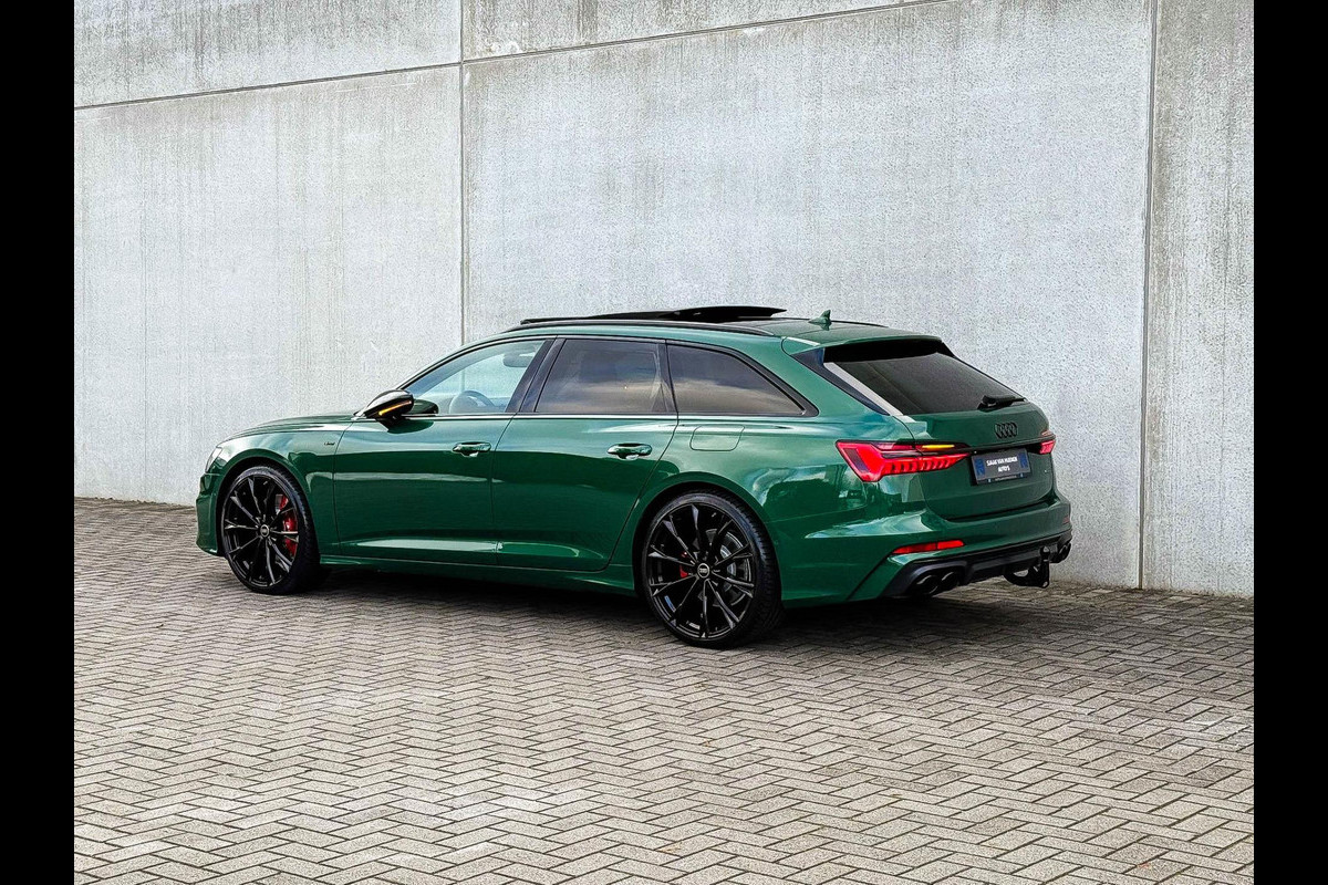 NIEUW MODEL| MODEL 2022 C8|Een unieke origineel Audi Exclusive Audi A6 Avant 55 TFSI e 367pk Quattro Competition S-Tronic Automaat S-Line S Edtiton Pro Line S! Verkerende in een werkelijk uitmuntende staat, afkomstig van 1é eigenaar en volledig door 1 en dezelfde Audi dealer onderhouden met een zeer interessante gecontroleerde tellerstand van slechts 46.513 kilometer. Door een echte liefhebber voorzien van de juiste onderscheidende ofwel ''perfecte'' Audi Exclusive fabrieksconfiguratie; denk aan de fantastische Audi Exclusive Sonoma Green Metallic lak gecombineerd met het Zwart optiekpakket, de elektrisch verstelbare Grijs Valcona lederen RS kuipstoelen incl. Diamond Cross stitching en geheugen fuctie / Memory, Audi Exclusive Alcantara airbag incl. Grijze Stiksels + Geperforeerd & verwarmde stuurwiel, Audi Magnetic Ride/ instelbare comfort Adaptieve dempingssysteem, HUD/Head-up Display, HD Matrix Dynamische LED koplampen, 360° Camera/ Area View, Black Pack / Zwart optiekpakket, Elektrisch wegklapbare trekhaak fabrieksaf, maar ook uiteraard het Dubbele Panoramisch glazen schuif-/kanteldak en natuurlijk de Audi Virtual Cockpit, Uniek! Deze A6 Avant Competition biedt met de 270kw/367pk en 500Nm sterke 2.0 liter TFSI turbomotor, gekoppeld aan de Audi Quattro 4-wielaandrijving een trekvermogen van 2000kg. Het betreft een BTW-auto, dus voor zowel de zakelijke als particuliere klant interessant. De getoonde 22inch Black Performance velgenset met 4x Hankook Ventus S1 EVO3 zomerbanden is tegen geringe meerprijs van €2595,- te verkrijgen.