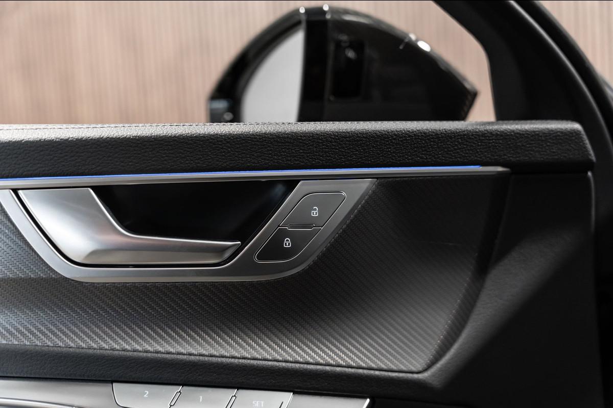 Het personaliseren van uw cockpitinterface is mogelijk met het digitale dashboard in deze auto. Door het combineren van beelden van vier camera's, biedt de 360 graden camera een naadloos en gedetailleerd beeld van de hele omgeving rondom deze auto. Adaptive cruise control houdt de ingestelde snelheid vast en houdt afstand tot het voertuig voor u. Waar u zelf ook bent, u staat altijd in contact met de auto via de app op uw smartphone. Zo controleert u uiteenlopende functies, ook op afstand. Als belangrijke extra geldt zonder twijfel het high performance audiosysteem met topkwaliteit geluidsweergave. Deze Audi is voorzien van navigatiesysteem, kruisend verkeer detectie, electronic climate control, sportstuur met schakelpaddels, draadloos opladen en DAB ontvangst.