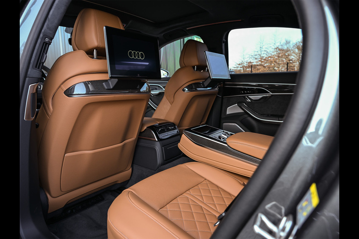 Audi A8 60 TFSI e quattro 463PK S-Line B&O Advanced | Head-Up Display | Achteras besturing | Panorama dak | Trekhaak | Soft-Close | Alcantara hemel bekleding | Carbon inleg | 360 Camera | Standkachel | Adaptive Cruise Control