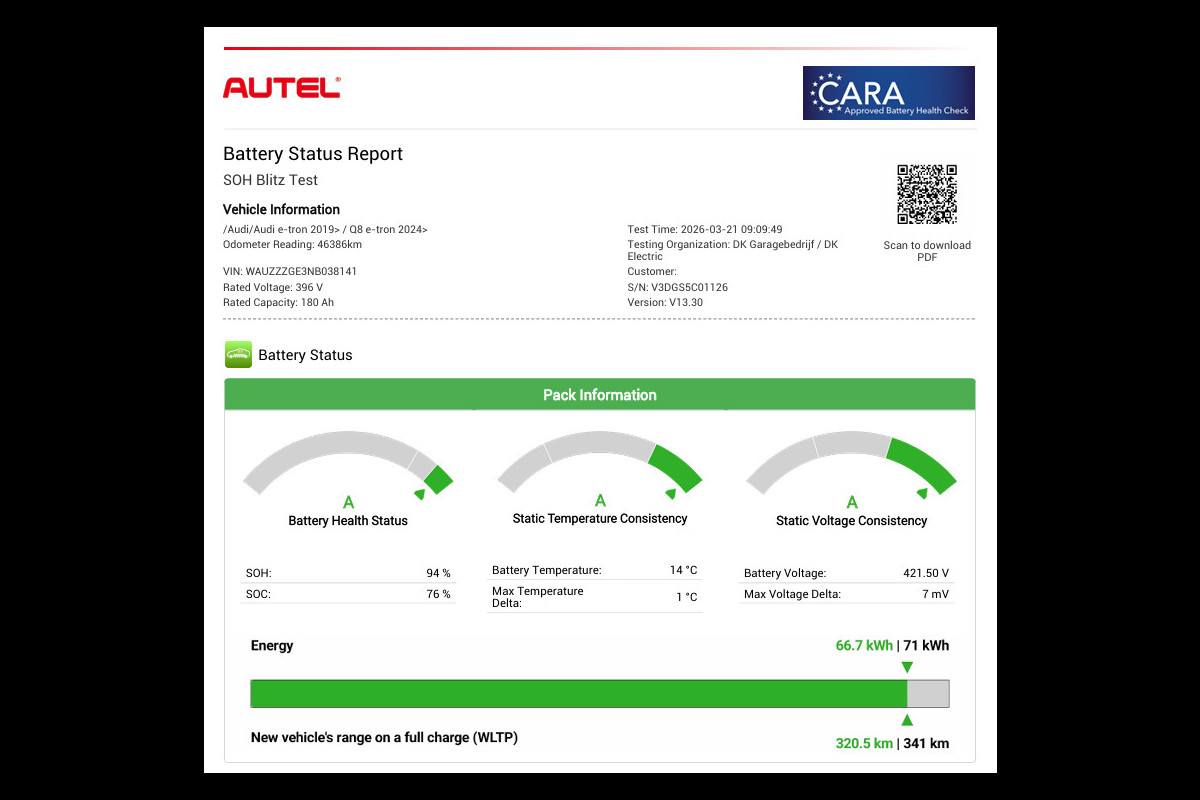 Accu: 71 kWh, Conditie: 94%