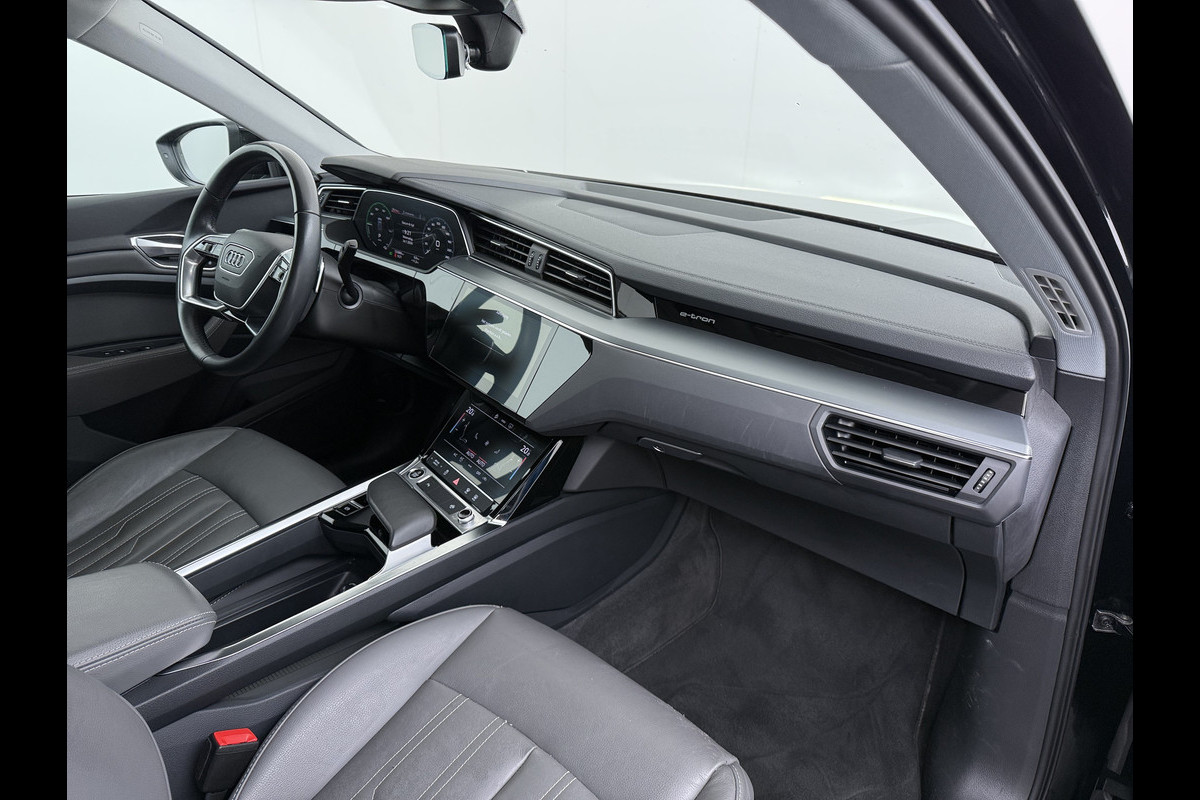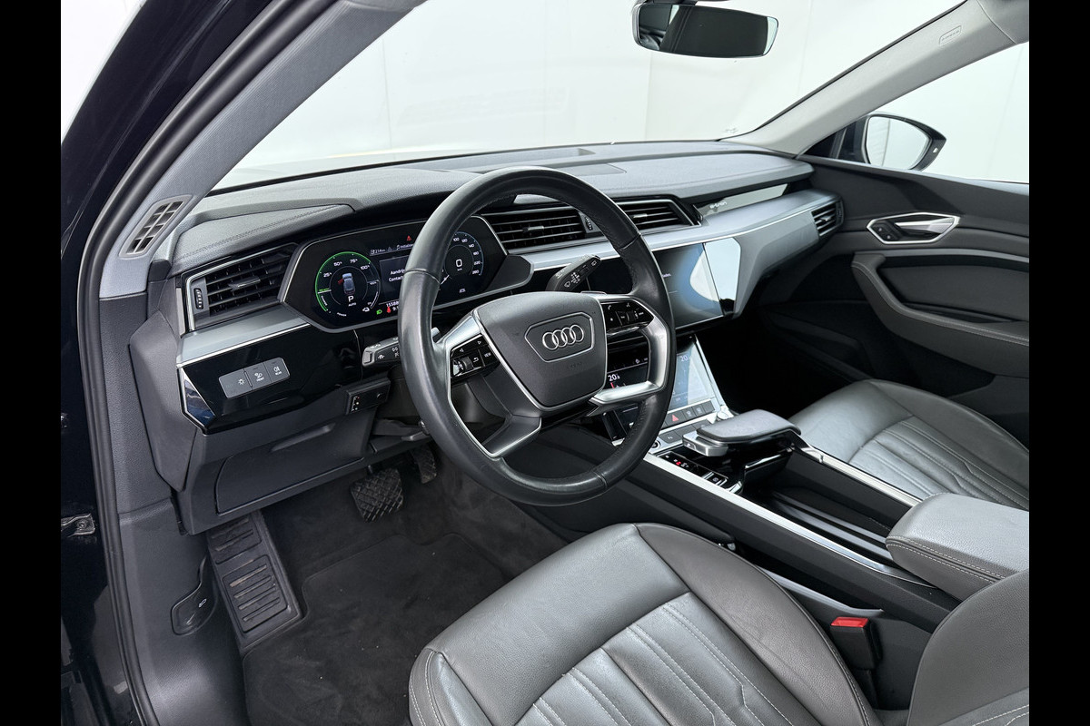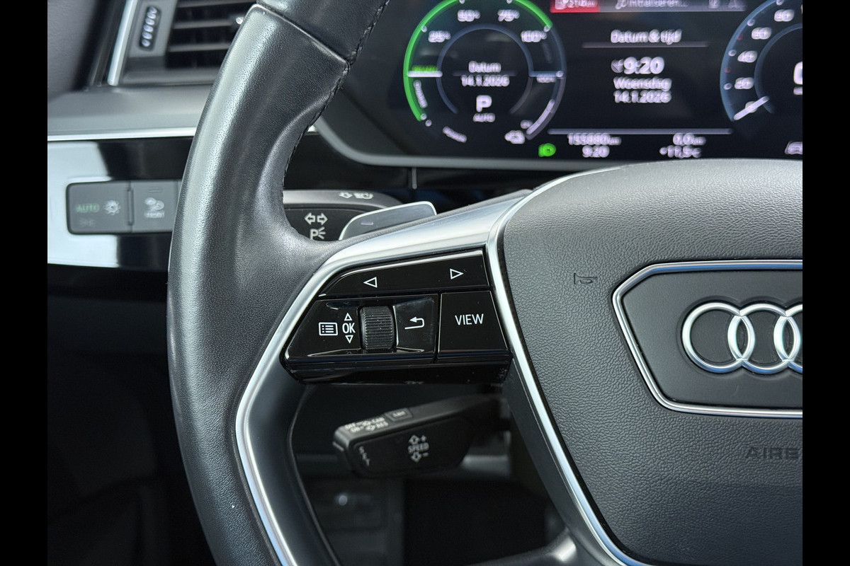 Audi e-tron 55 Quattro 95kWh 408PK- Leer+Verwarmd Trekhaak Luchtvering Adap.Cruise Navi Ecc Stoelverwarming Business edition Plus LED Lmv Elek.Achterklep Privacy Glas Keyless Zwarte Hemel Origineel Nederlandse Auto SOH 89% Trekhaak 1800kg !