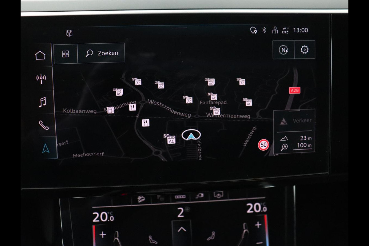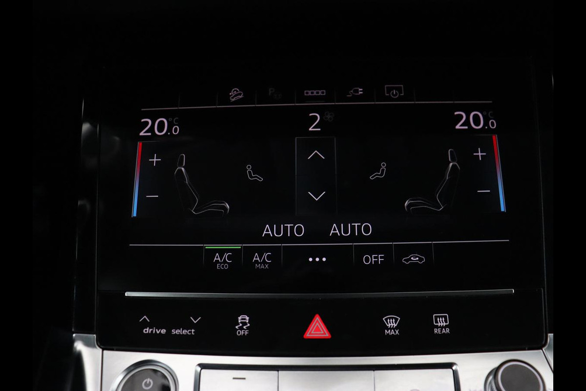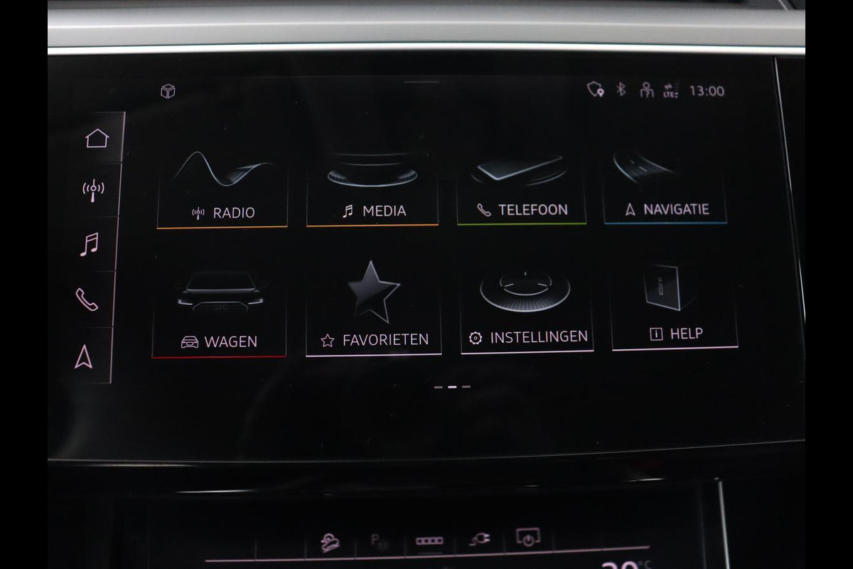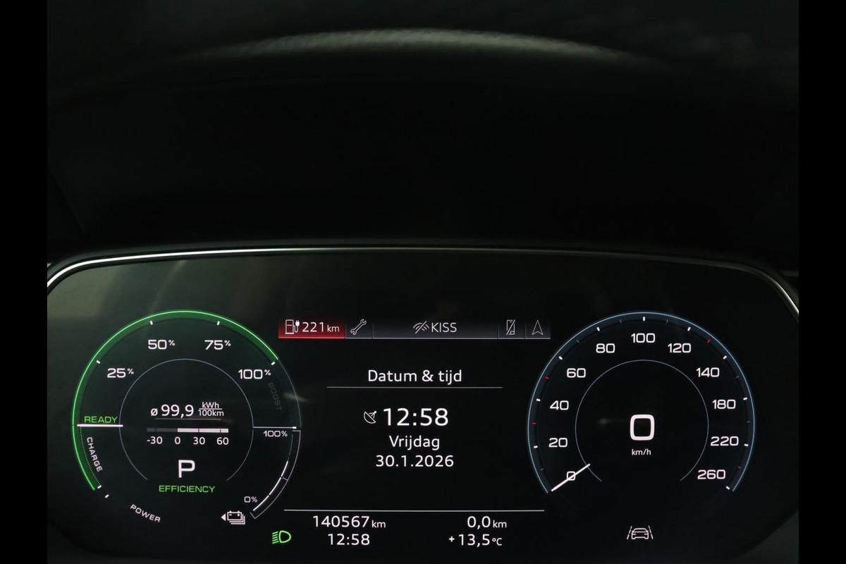 Natuurlijk brengt het digitale dashboard alle ritinformatie perfect in beeld. Maar ook communicatie, navigatie en tal van andere functies zijn permanent te volgen. Connected Services voegt nog meer comfort en veiligheid toe aan deze auto. In deze e-tron vindt u niet alleen schakelaars op het stuur om het full map navigatiesysteem te bedienen en het audio-installatiesysteem met DAB-ontvangst, maar er is ook spraakbediening. Het comfort wordt verhoogd door de aanwezige electronic climate control. Parkeersensoren zijn een handig hulpmiddel om parkeerschades te voorkomen. En deze auto heeft ook sportstuur met schakelpaddels, regensensor, cruise control, automatisch dimmende buitenspiegels, centrale deurvergrendeling met afstandsbediening en bagage afdekhoes als standaard uitrusting.