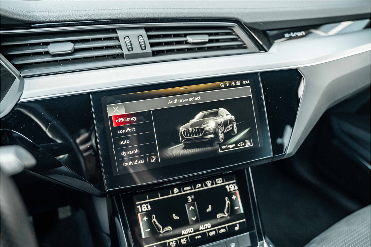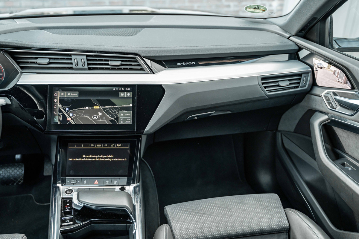 Rij- en route-info wordt perfect in beeld gebracht door het digitale dashboard. Had u de auto nou wel afgesloten? Met Connected Services checkt u het overal en altijd. U bedient het full map navigatiesysteem en het audio-installatiesysteem met DAB-radio via knoppen op het stuur, of zelfs met uw stem. Zo kunt u steeds uw aandacht gericht houden op de weg. De electronic climate control zorgt voor een behaaglijk klimaat in de auto. Parkeerplekken worden er niet ruimer op. Maar met de aanwezige parkeersensoren krijgt u deze Audi e-tron Sportback zonder problemen op z'n plaats. Met WIFI-hotspot, sportstuur met schakelpaddels, regensensor, cruise control, automatisch dimmende binnenspiegel en centrale deurvergrendeling met afstandsbediening is deze Audi helemaal compleet.