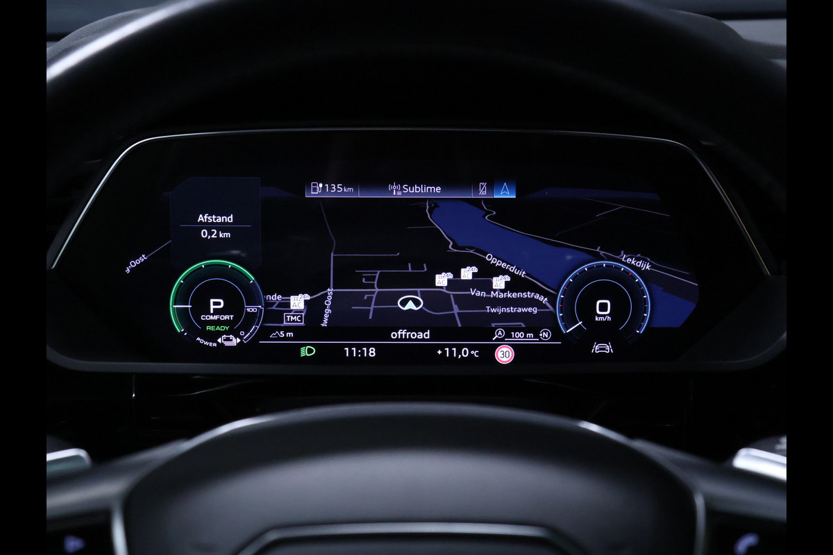 Het digitale dashboard vertelt u alles wat u wilt weten voor een slimme, comfortabele en veilige rit. Comfortabel en veilig achteruitrijden gaat gemakkelijker dan ooit met behulp van de achteruitrijcamera. Met adaptive cruise control houdt de auto zelfstandig afstand tot uw voorligger. Een veiligheidsverhogende optie waarmee u comfortabel onderweg bent. Rijden-stilstaan, rijden-stilstaan. Niks is irritanter en vermoeiender dan filerijden. Daar heeft deze Audi e-tron Sportback een oplossing voor: de file assistent, die met radarmeting permanent het tempo aanpast op de voorligger. Zelfs als die stopt. Oliepeil, bandenspanning, sloten en andere functies zijn via een speciale app overal te checken dankzij Connected Services. Ook dashboard met spraakbediening, full map navigatiesysteem, WIFI-hotspot, electronic climate control, schakelpaddles aan het stuur en DAB ontvangst zijn aan boord.