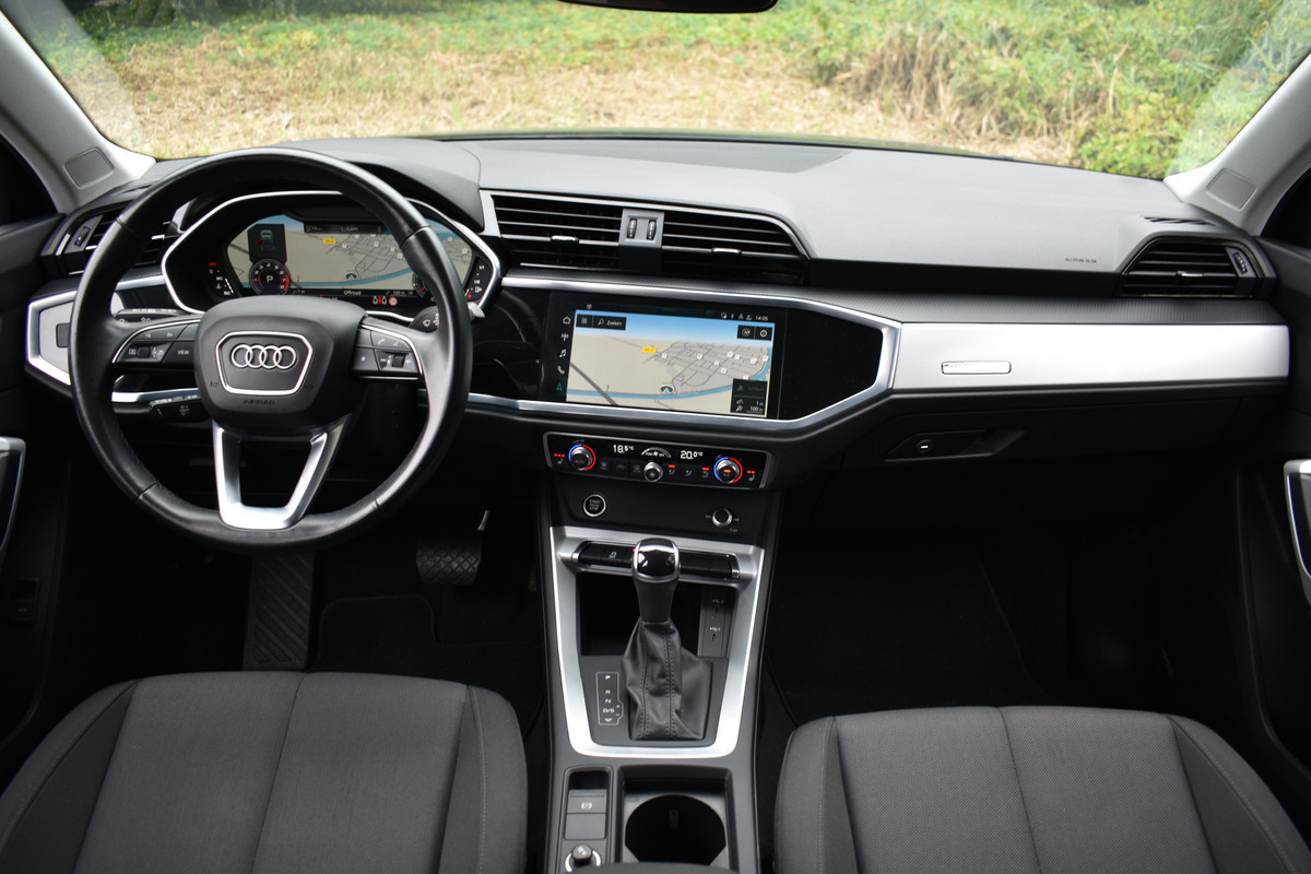 Deze Audi Q3 is een 35 TFSI en heeft een S-tronic automaat voor perfecte rijeigenschappen en is compleet met vele opties en extra`s o.a.: Origineel navigatiesysteem/multimedia/bluetooth, audi connect, Volledig digitale cockpit, boordcomputer, sport/comfort stoelen incl. stoelverwarming, volautomatische Climate-control airconditioning, multifunctioneel leder sportstuur, rijstrook sensor, cruise-control, LED dagrij-verlichting met LED Koplampen, parkeersensoren voor en achter, lichtmetalen velgen, Elektrisch bedienbare achterklep, etc..
