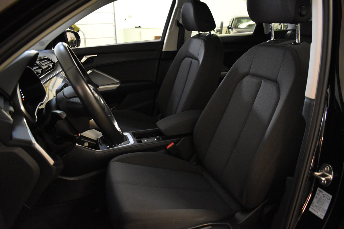 Deze Audi Q3 is een 35 TFSI en heeft een S-tronic automaat voor perfecte rijeigenschappen en is compleet met vele opties en extra`s o.a.: Origineel navigatiesysteem/multimedia/bluetooth, audi connect, Volledig digitale cockpit, boordcomputer, sport/comfort stoelen incl. stoelverwarming, volautomatische Climate-control airconditioning, multifunctioneel leder sportstuur, rijstrook sensor, cruise-control, LED dagrij-verlichting met LED Koplampen, parkeersensoren voor en achter, lichtmetalen velgen, Elektrisch bedienbare achterklep, etc..