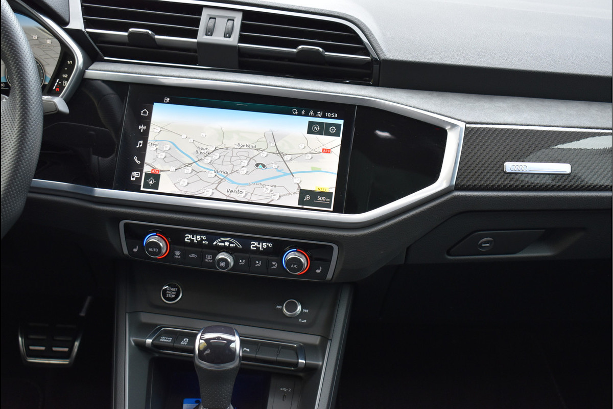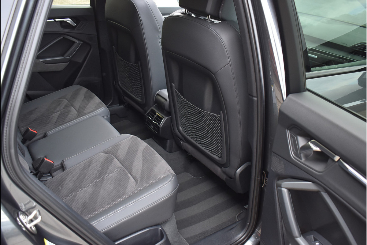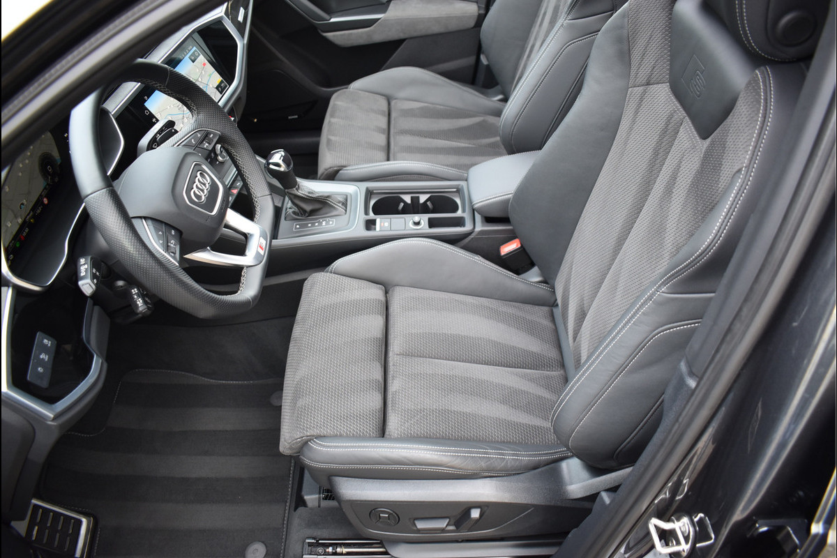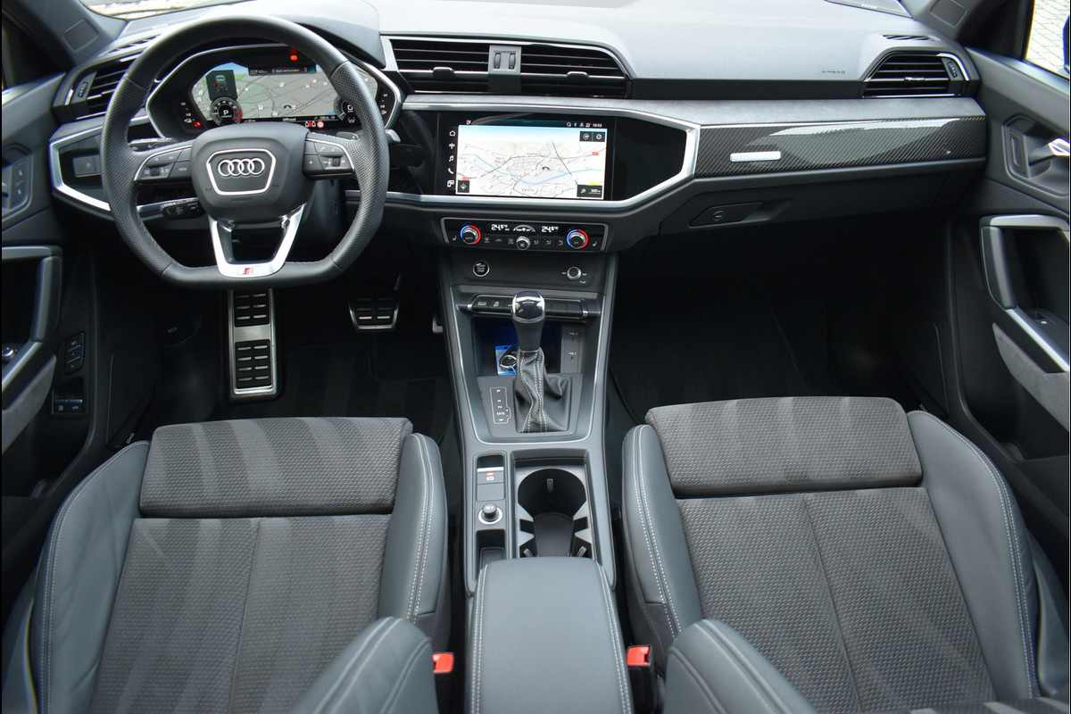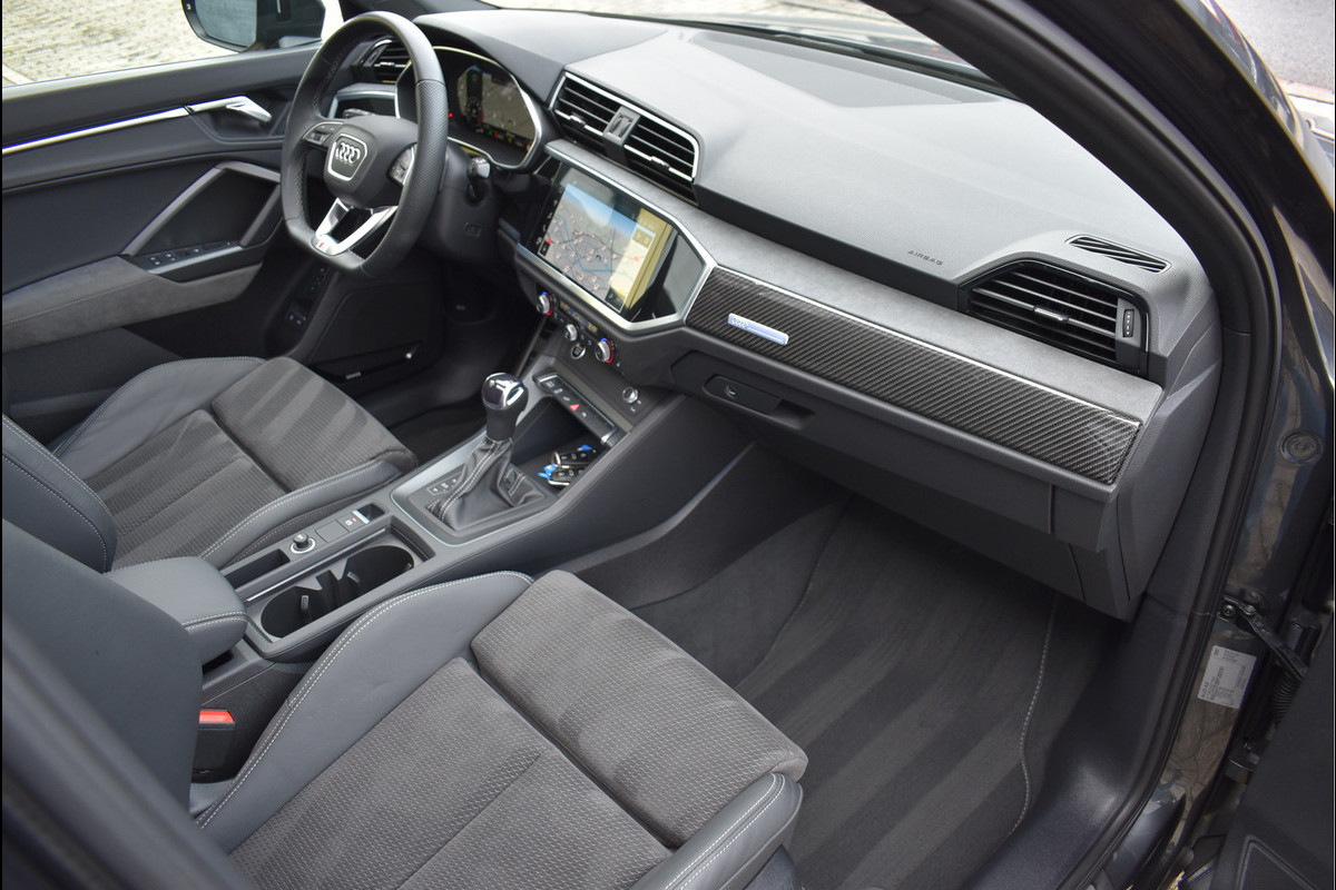 2022 Audi Q3 45 TFSI e S-Line 245 Pk DLR Onderhouden 07-2022 met 78194 km Daytona Grijs Metallic Opties: Matrix Koplampen Leder/Alcantara Sportstoelen Elektrisch Verstelbaar met Memory Black Optik Pakket Virtual Cockpit Groot Navigatie Full Map Keyless Entry/Start Sfeerverlichting in Kleur Instelbaar Carbon Int Inleg Sonos Spiegels Elektrisch Inklapbaar Elektrische Achterklep Climate Control 2 Zone Stoelverwarming ACC Adaptieve Cruise Control Lane Assistent Achteruitrijcamera Parkeersensoren V+A DAB Radio Drive Select Instelbaar Getint Glas Dynamische Achterlampen (Zandlopers) Dodehoek Detectie Sfeerverlichting in Kleur Instelbaar Apple Carplay 20 Inch Audi Sport Velgen