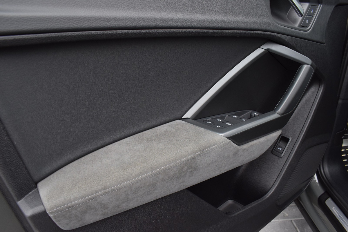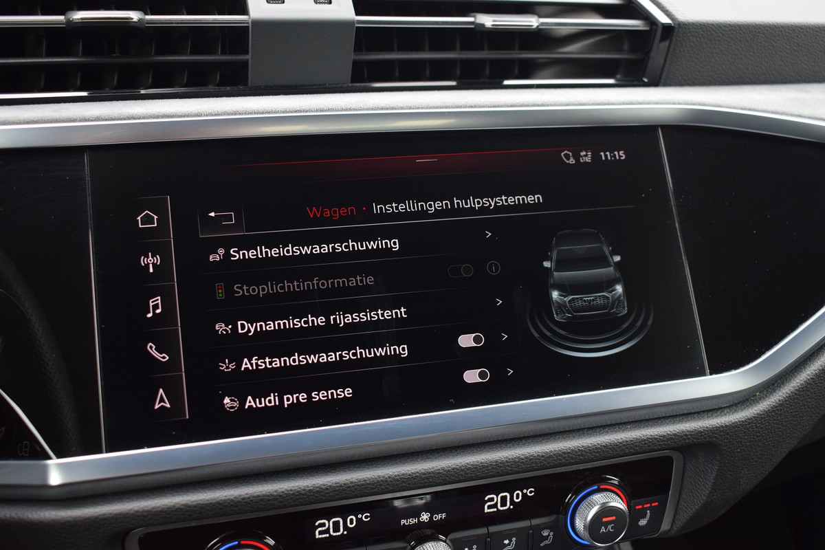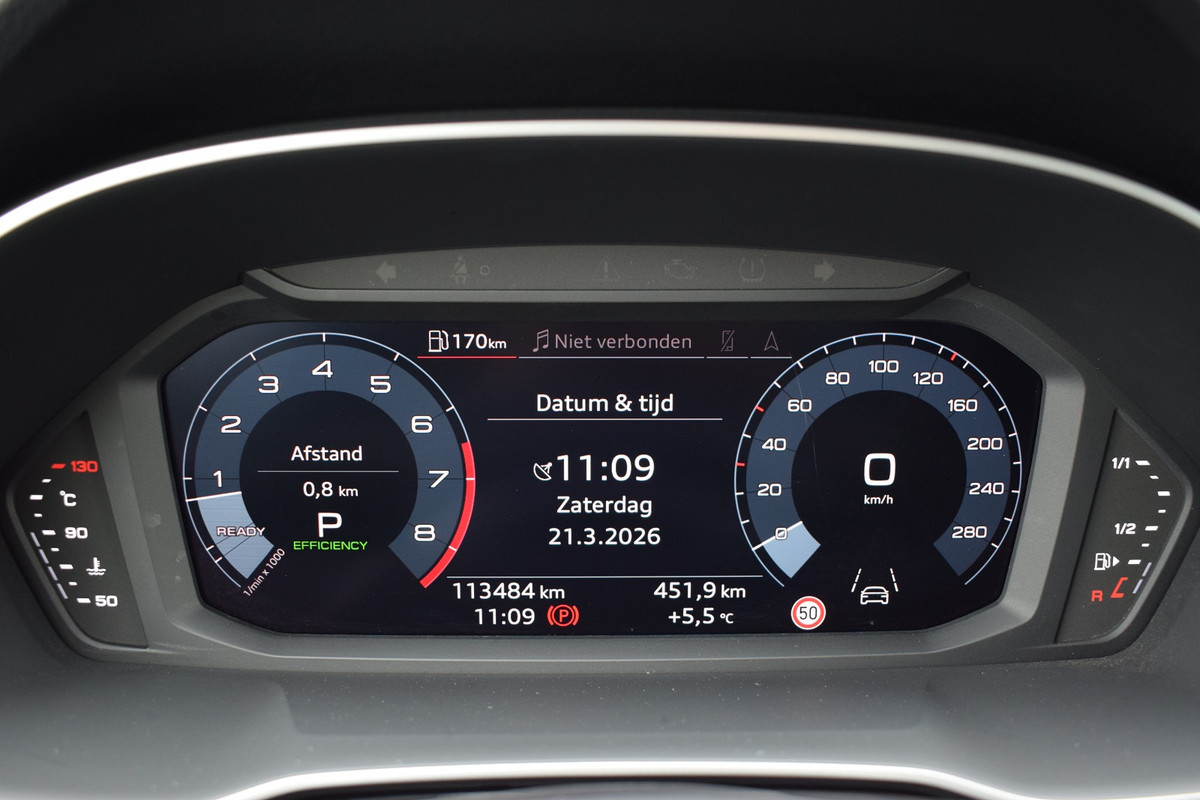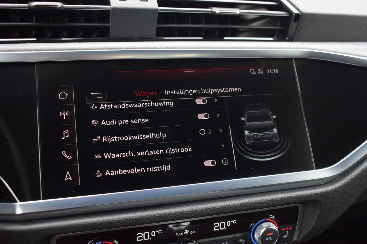 Audi Q3 Sportback 35 TFSI 150pk S-tronic S-line. Uitgevoerd met o.a.: Hoogglans zwart optiekpakket, Lichtmetalen velgen 20", Climate control, Adaptieve Cruise control, Lane Assist, Side Assist, Navigatiesysteem MMI Plus, Digitale radio ontvangst, Half lederen / alcantara interieur met sportstoelen voor, Stoelverwarming, Lederen multifunctioneel sportstuur, Elektrisch bedienbare achterklep, Elektrisch bedienbare kindersloten, Dasboardinleg geborsteld aluminium mat, Parkeersensoren voor en achter, Achteruitrijcamera, Licht en Regensensor, Privacy glas achter.