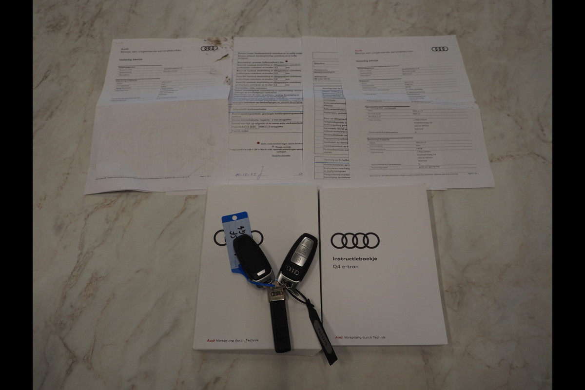 Deze origineel Nederlandse Audi Q4 E-Tron 35 Launch Edition 55kwh 170PK van bouwjaar 2021 heeft 61.000 km gereden en verkeert in nette staat. De auto is uitgerust met luxe opties waaronder een Audi Grootbeeld Audio Navigatie Systeem met Apple Carplay & Android Auto, Stoelverwarming, Luxe Lederen Bekleding, Achteruitrijcamera, Cruise Controle, Lane Assist, Lichtmetalen Velgen, een Vol Automatisch Climate Controle Systeem, DAB Radio, Parkeer Sensoren Voor en Achter, Full LED Verlichting en nog veel meer.