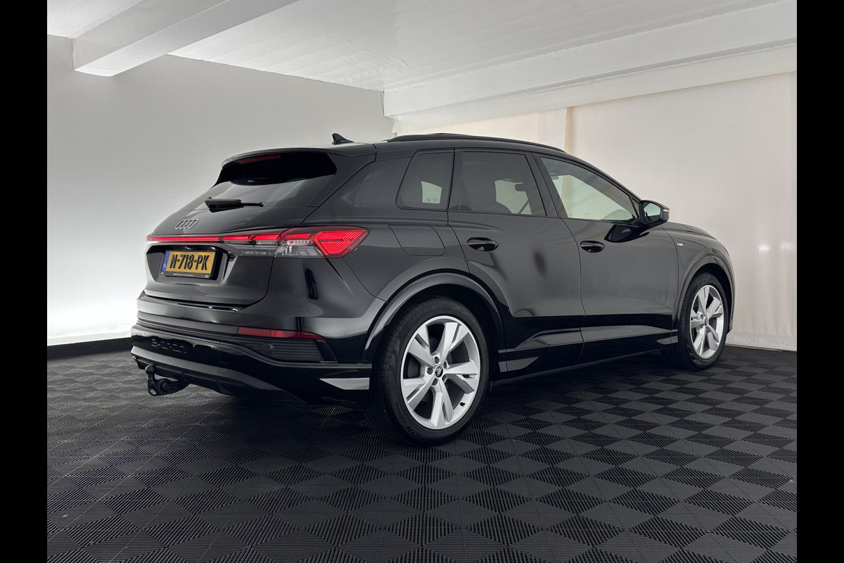 Audi Q4 e-tron 40 S-Line Launch-edition Competition 77 kWh [ 3-Fase-11kW ] {SOH-90%} (INCL-BTW) Aut. *HEATPUMP | PANO | LEATHER | MATRIX-LED | AUDI-SOUND | ADAPTIVE-CRUISE | HEATED-SPORTSEATS | AMBIENTLIGHT | DIGI-COCKPIT | CAMERA | KEYLESS | DAB+ | 20''ALU*