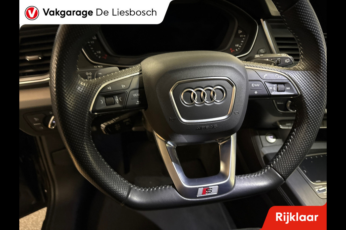 **Audi Q5 50 TFSI e quattro S edition** | Luxe Hybride SUV vol met opties Ontspannen en zorgeloos autorijden, dat doet u met deze Audi Q5. De Audi Q5 vertegenwoordigt het beste van degelijk Duits design. Een viercilinder motor en een automatische transmissie zorgen voor de uitstekende prestaties van deze auto. Vierwielaandrijving verdeelt de aandrijfkracht over de wielen en zorgt voor meer grip. Donkere en koude maanden? U zit altijd goed dankzij de stoelverwarming. Met een druk op de knop gaat de elektrische achterklep open. Bij de uitrusting van deze auto horen onder meer 20 inch lichtmetalen velgen, halflederen bekleding, warmtewerend glas, adaptieve verlichting, elektrische handrem en dakspoiler.