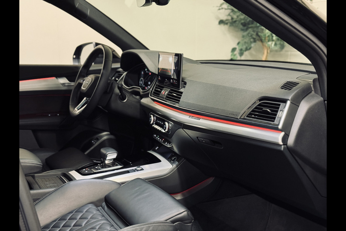 Zeer fraaie Audi Q5 50 TFSI e S Edition met S-Line interieur en exterieur. Afkomstig van de eerste eigenaar bij een Duitse Audi Dealer, aantoonbaar dealer onderhouden. Voorzien van een fraaie optielijst, waaronder Assistentiepakket City + Tour, elektrisch glazen panoramadak, fijnnappaleder met ruitmotief en S-Logo, elektrisch verstelbare stoelen met geheugen, uitgebreide sfeerverlichting, Bang & Olufsen audio, stoelverwarming voor en achter, matrix LED koplampen, 20" lichtmetalen velgen, 360 graden camera, etc.