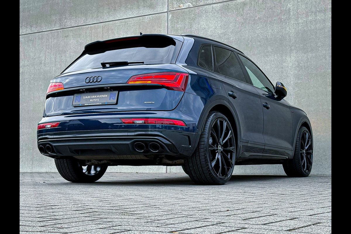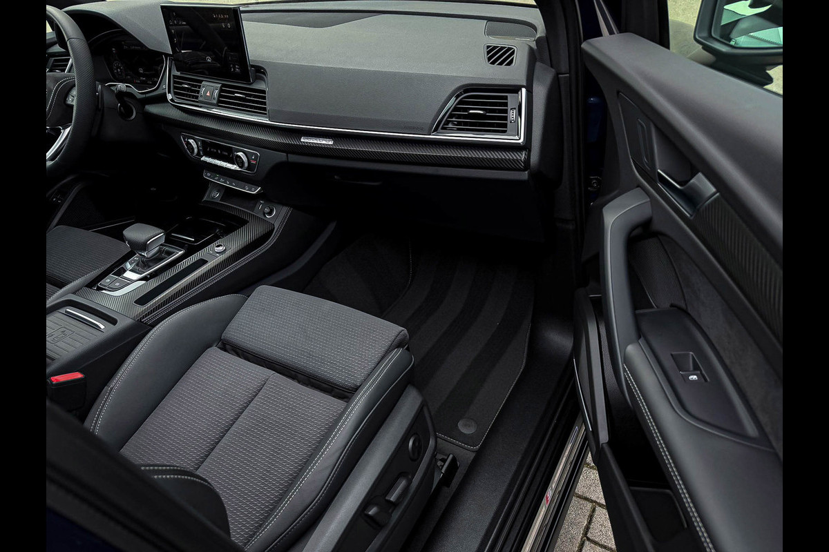 Voorzien van prachtige opties zoals: NIEUW MODEL 2023!|Audi Exclusive|S-Line interieur|S-Line exterieur|50 TFSIe Plug in Hybride 299pk/ 450Nm|Quattro 4-wielaandrijving|S-Tronic Automaat|Audi Exclusive Atollblau Metallic|Panoramisch glazen schuif-/kanteldak|Elektrisch bedienbare zonwering panoramadak|Audi Virtual Cockpit Plus|Premium leder pakket Audi Exclusive o.a. deurpanelen/ armliggers en middenconsole incl. Grijze stiksels|Airsuspension / Luchtvering - Dynamisch instelbaar onderstel|Zwart Valcona leder/alcantara S-Line Sportstoelen incl. Grijze stiksels|Elektrisch verstelbare voorstoelen|Elektrisch verstelbare lendensteun|Stoelverwarming|Geperforeerd lederen 3-spaaks S-line Verwarmbaar Sportstuurwiel incl. Grijze stiksels|Audi Exclusive Alcantara airbag met Grijs stiksel|Area View / 360° Camera|Parkeersensoren voor- & achterzijde|Parkassist / Automatisch inparkeersysteem|Vooruitrijcamera|Achteruitrijcamera|Rondomcamera/ Top view|Audi Drive Select - Instelbare rijprofielinstellingen|LED dagrijverlichting|HD Matrix OLED koplampen met dynamische lichtanimatie|LED achterlichten|3D Dynamische knipperlichten voor- & achterzijde|ACC / Adaptieve Cruise Control|Lane Assist|Side Assist / Dodehoeksensor|Filehulp|HUD / Head Up Display|Audi Pre Sense|Attention Assist|Grootlichtassist|Voice Control|Elektrisch bedienbare achterklep|Afstandswaarschuwing|Navigatiesysteem MMI Plus|Uitgebreide boordcomputer|Bluetooth|B&O / Bang & Olufsen 3D Surround soundsysteem incl. Subwoofer|DAB+ / Digital Audio Broadcasting|Qi inductief / draadloos opladen smartphone|Audi Connect Key|APP Connect|Apple CarPlay / Android Auto|Keyless Entry & Keyless GO|19inch LM Audi S-line velgen|*Optioneel: Getoonde 22inch Black Performance velgen|Coming-/Leaving Home|Licht- & Regensensor|Ambiance sfeerverlichting Premium|Climate Control 3-zones|F1 schakelflippers|Spiegelpakket - Elektrisch verwb.-/verstelb. + inklapbare buitenspiegels|Carbonlook interieur pakket|Zwarte hemelbekleding|Automatisch dimmende binnenspiegel & buitenspiegels|Elektrische ramen voor- & achterzijde|Akoestisch geisoleerde zijruiten|Warmtewerende voorruit|Zonneschermen zijruiten|RVS Sportpedalen|RVS instaplijsten incl. LED verlichting|Zwarte Audi emblemen rondom|Black Pack Plus / Zwart optiekpakket|Hoogglans zwarte grille|Hoogglans zwarte raamomlijsting|Hoogglans zwarte Audi emblemen|Hoogglans zwarte buitenspiegels|Audi OEM Design Black SQ5 diffuser + Hoogglans zwarte uitlaat eindstukken|Rode Audi Sport S remklauwen|Privacy Glass|Voorruitverwarming incl. voorklimatisering|Standkachel / Interieurvoorverwarming fabrieksaf|Elektrisch wegklapbare trekhaak fabrieksaf|Alarmsysteem fabrieksaf|