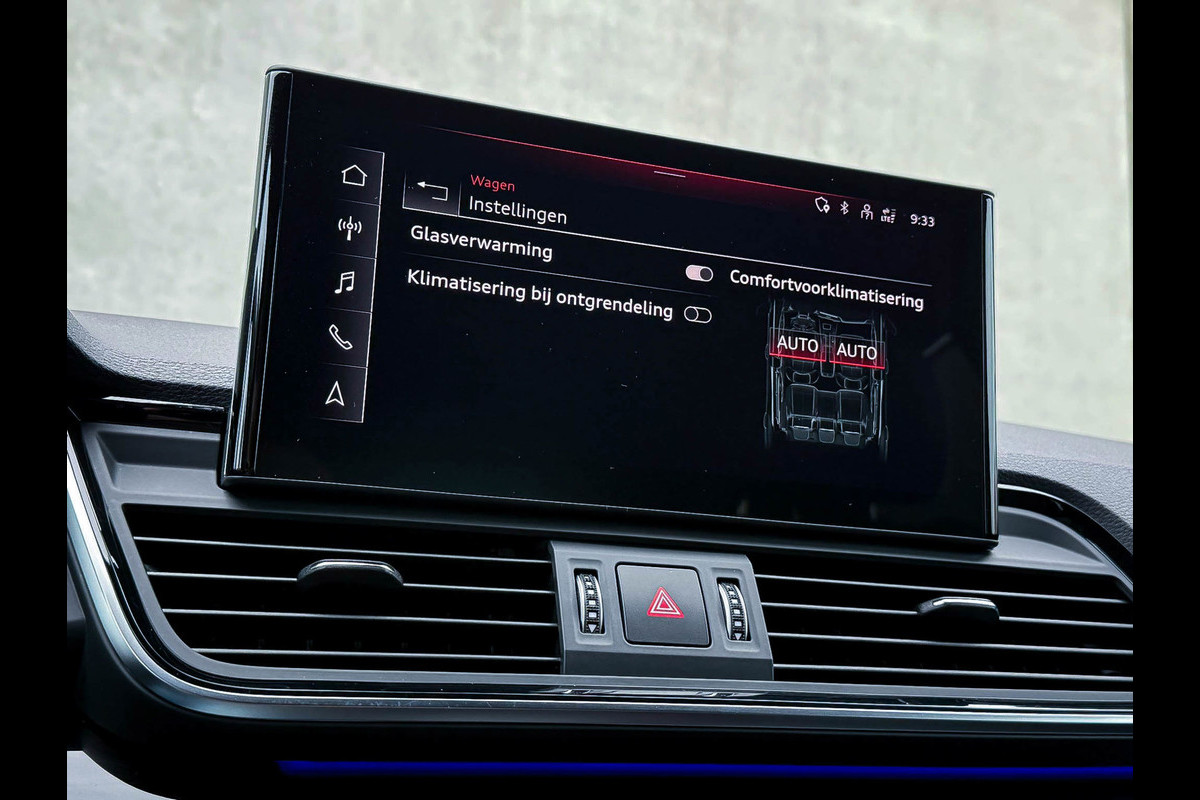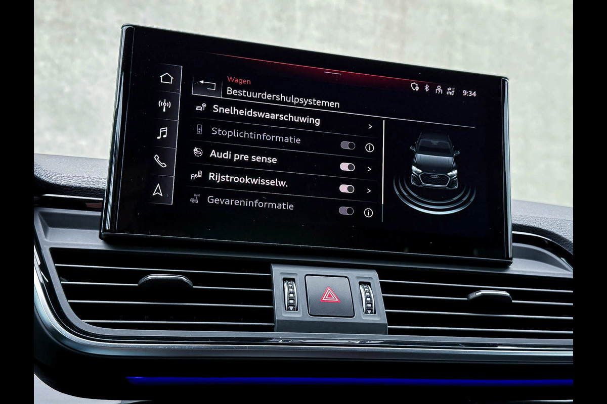 Voorzien van prachtige opties zoals:|NIEUW MODEL 2023!|Audi Exclusive|S-Line interieur|S-Line exterieur|50 TFSIe Plug in Hybride 299pk/ 450Nm|Quattro 4-wielaandrijving|S-Tronic Automaat|S-Line Daytona Grey Pearl Metallic|Panoramisch glazen schuif-/kanteldak|Elektrisch bedienbare zonwering panoramadak|Audi Virtual Cockpit Plus|Zwart Valcona Lederen S kuipstoelen incl. Diamond Cross stitching Grijze stiksels|Elektrisch verstelbare voorstoelen|Stoelverwarming|Geperforeerd lederen 3-spaaks Afgevlakt S-line Sportstuurwiel incl. Grijze stiksels|Audi Exclusive Alcantara airbag met Grijs stiksel|Area View / 360° Camera|Parkeersensoren voor- & achterzijde|Parkassist / Automatisch inparkeersysteem|Vooruitrijcamera|Achteruitrijcamera|Rondomcamera/ Top view|Audi Drive Select - Instelbare rijprofielinstellingen|LED dagrijverlichting|HD Matrix OLED koplampen met dynamische lichtanimatie|LED achterlichten|3D Dynamische knipperlichten voor- & achterzijde|Cruise Control|Side Assist / Dodehoeksensor|Audi Pre Sense|Attention Assist|Grootlichtassist|Voice Control|Elektrisch bedienbare achterklep|Afstandswaarschuwing|Navigatiesysteem MMI Plus|Uitgebreide boordcomputer|Bluetooth|Audi Soundsysteem Premium incl. Subwoofer|DAB+ / Digital Audio Broadcasting|Qi inductief / draadloos opladen smartphone|Audi Connect Key|APP Connect|Apple CarPlay / Android Auto|Keyless|19inch LM Audi S-line velgen|*Optioneel: Getoonde 22inch Black Performance velgen|Coming-/Leaving Home|Licht- & Regensensor|Ambiance sfeerverlichting Premium|Climate Control 3-zones|F1 schakelflippers|Spiegelpakket - Elektrisch verwb.-/verstelb. + inklapbare buitenspiegels|Pianolak hoogglans zwarte interieurafwerking|Zwarte hemelbekleding|Automatisch dimmende binnenspiegel & buitenspiegels|Elektrische ramen voor- & achterzijde|Warmtewerende voorruit|Zonneschermen zijruiten|RVS Sportpedalen|RVS instaplijsten incl. LED verlichting|Zwarte Audi emblemen rondom|Black Pack Plus / Zwart optiekpakket|Hoogglans zwarte grille|Hoogglans zwarte raamomlijsting|Hoogglans zwarte Audi emblemen|Hoogglans zwarte buitenspiegels|Audi OEM Design Black SQ5 diffuser + Hoogglans zwarte uitlaat eindstukken|Rode Audi Sport S remklauwen|Privacy Glass|Voorruitverwarming incl. voorklimatisering|Standkachel / Interieurvoorverwarming fabrieksaf|Alarmsysteem fabrieksaf