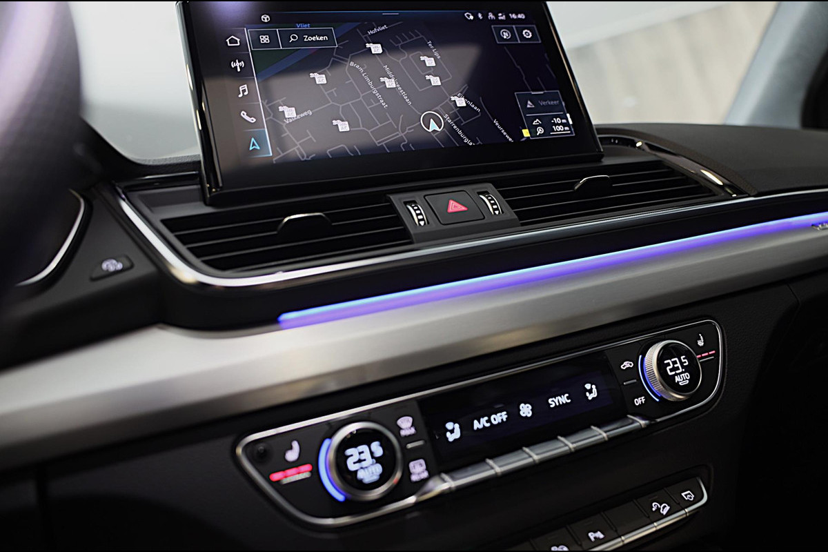 Auto's als deze Audi Q5 bieden tegelijk rijdynamiek, comfort en degelijkheid. S-Line styling geeft deze auto een extra dynamische uitstraling. Een krachtige motor geeft deze auto zijn sportieve prestaties. Niets geeft meer gevoel van luxe en comfort dan een lederen interieur. Ook dat is hier meegeleverd Neem plaats op de comfortabele stoelen. Dankzij de elektrische bediening en het geheugen is het eenvoudig om hierin de beste zitpositie te vinden. Houdt u van frisse lucht en van licht dan zit u helemaal goed met het elektrisch bediende panoramadak. De bagageruimte is toegankelijk via een comfortverhogende elektrische achterklep. De kwaliteit van de matrix LED-verlichting geeft het gevoel dat u bij daglicht rijdt. Natuurlijk behoren open dak, 20 inch lichtmetalen velgen, warmtewerend glas, zwarte hemelbekleding, in delen neerklapbare achterbank en LED-achterlichten ook tot de uitrusting van deze complete auto.