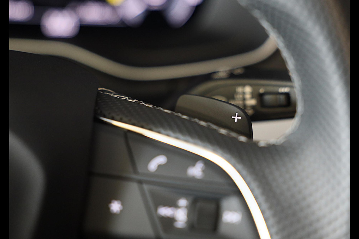 Alle functies voor een veilige en zuinige rit worden overzichtelijk weergegeven op het digitale dashboard. De vier camera's die samen de 360 graden camera vormen, bieden u de mogelijkheid om obstakels in elke richting te zien. Als u de adaptive cruise control inschakelt, regelt de auto zelf de snelheid en de afstand tot de auto voor u. In deze auto kunt u de belangrijkste functies bedienen met uw stem. De hoorbare sensatie van het high performance audiosysteem is een ervaring op zich. Extra opties op deze auto zijn: navigatiesysteem, automatische airconditioning, F1-schakelflippers op het stuurwiel, draadloos opladen, DAB ontvangst en regensensor.