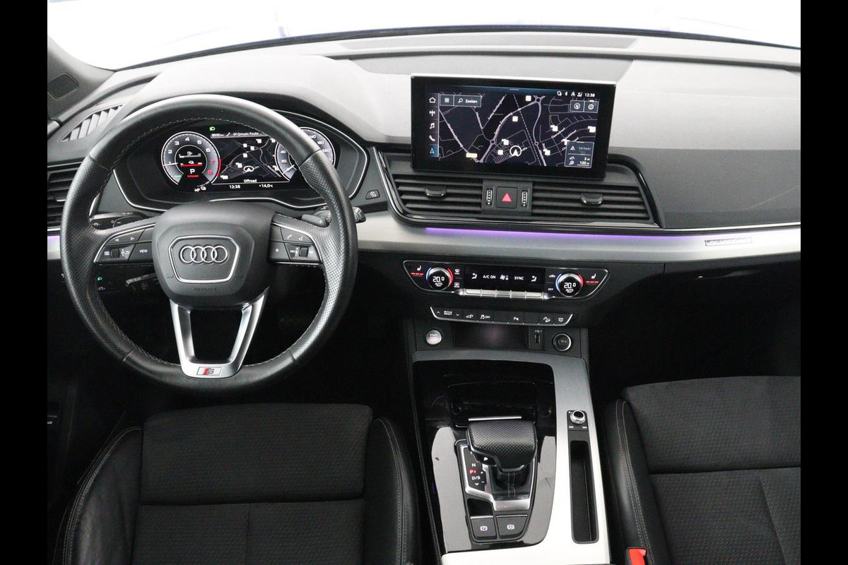 Laat u niets wijsmaken, deze Audi Q5 biedt alles wat u van een auto verlangt. Deze auto komt uit 2021. Voor liefhebbers van rijplezier is de S-Line styling een belangrijke reden om voor deze auto te kiezen. Dit is een van de betere hybride auto's. Ideaal rijden door de combi van elektromotor en verbrandingsmotor! Ruimte? Ja hoor! Open maar eens de elektrisch bedienbare achterklep en check de bagageruimte; stap daarna in om het weidse gevoel te ervaren dat het elektrisch bediende glazen panorama dak u bezorgt. Lekker hoor, die verwarmbare voorstoelen. Helemaal op koude dagen. De sportstoelen geven u veel zitsteun. Ook op de minder vlakke wegen zoeft u lekker door dankzij de luchtvering. De slimme koplampen gebruiken de allernieuwste matrix LED-verlichting. Altijd maximaal zicht, nooit verblinding bij de tegenligger. Ook 21 inch lichtmetalen velgen, warmtewerend glas, in delen neerklapbare achterbank, LED-achterlichten en verwarmde ruitensproeiers horen tot de voorzieningen op deze auto.