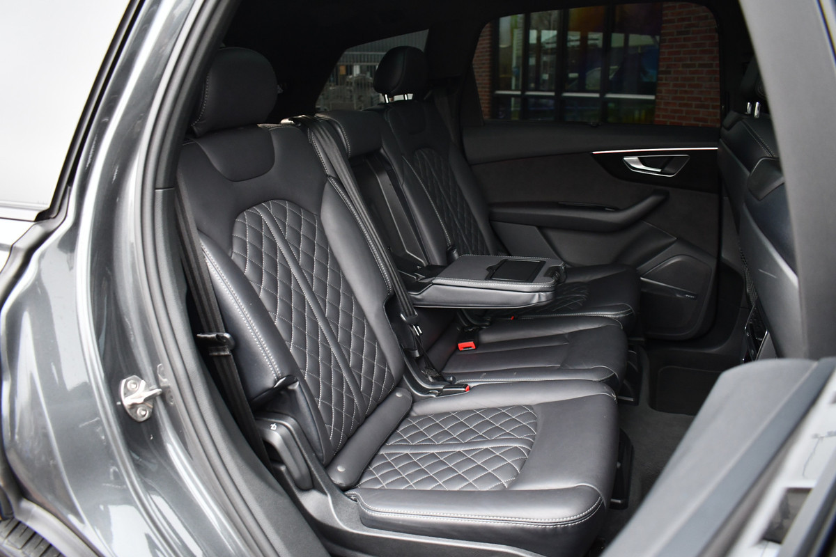 Bijzonder luxe Q7 50 TDI met 7 zitplaatsen en keurig dealeronderhouden. Compleet met: S-Line exterieur en interieur, panoramadak, luchtvering, nappa lederen bekleding met ruitstiksel. adaptieve cruise control, voorstoelen elektrisch verstelbaar (1x memory), 4x stoelverwarming, meesturende achteras, head-up display, BOSE audio, 22 inch wielen, glanspakket / optic black, standkachel met afstandbediening, etc!