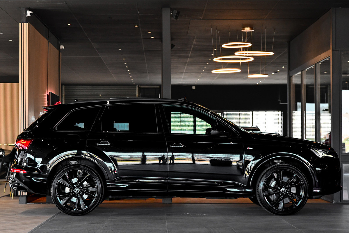 Audi Q7 55 TFSI e quattro 3x S-Line. Pano, ACC, HUD, Memory, Leder, B&O, Stuurvw, Keyless, Camera, Matrix, Sfeer, 22''!