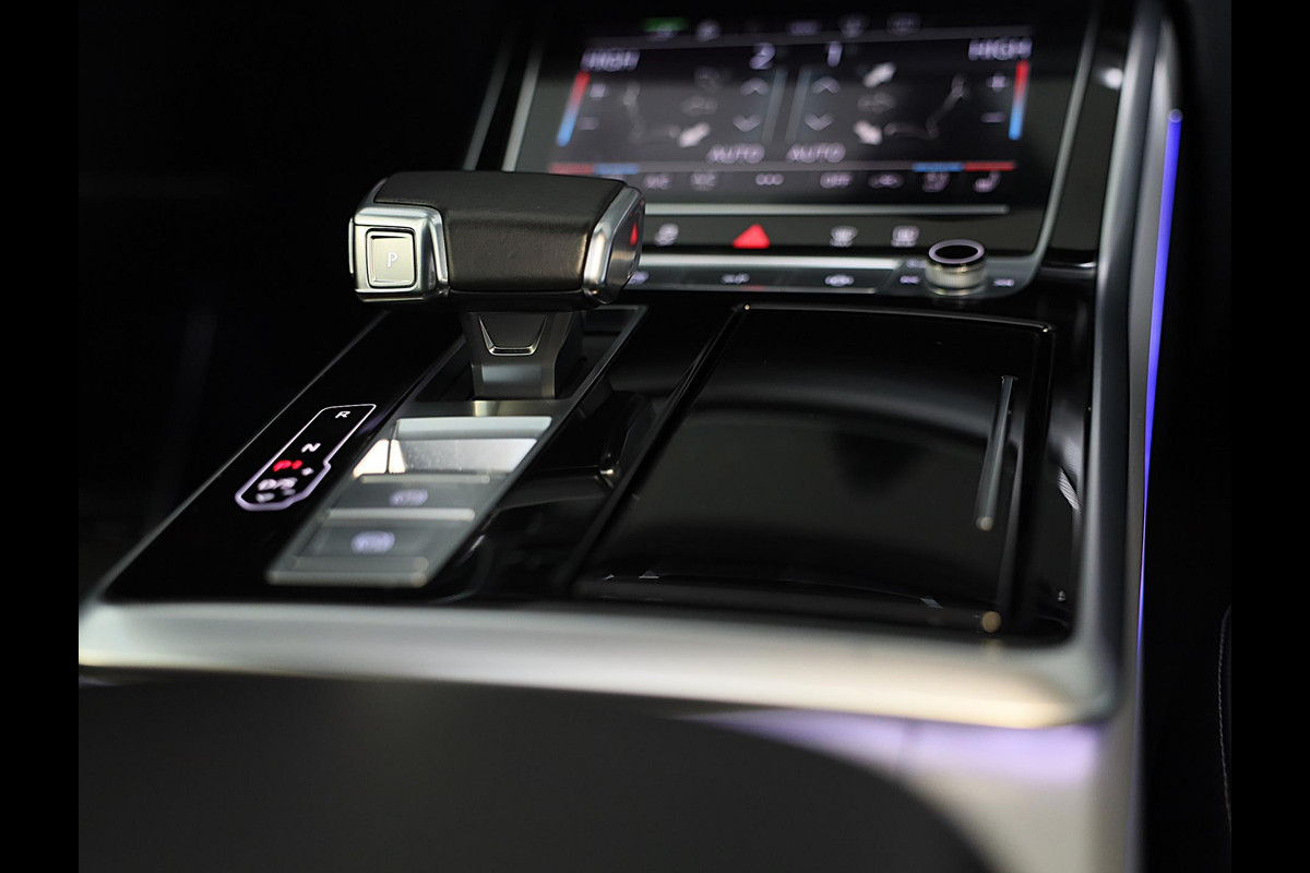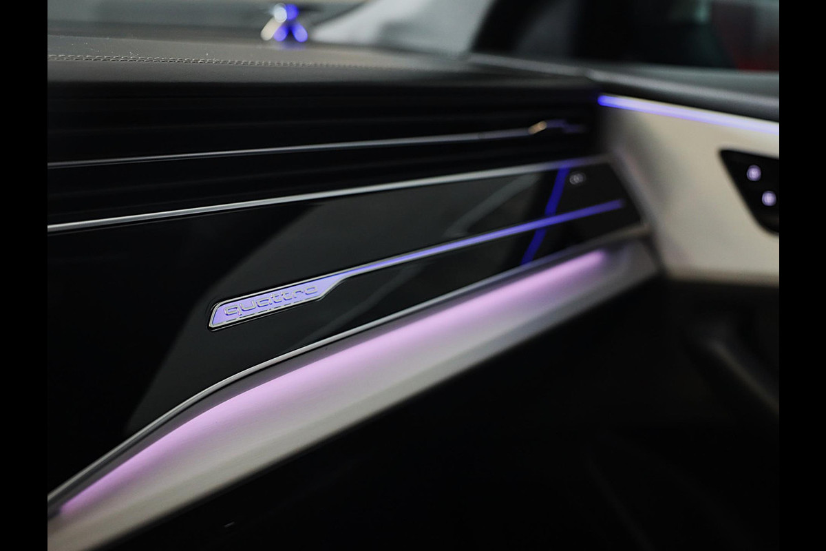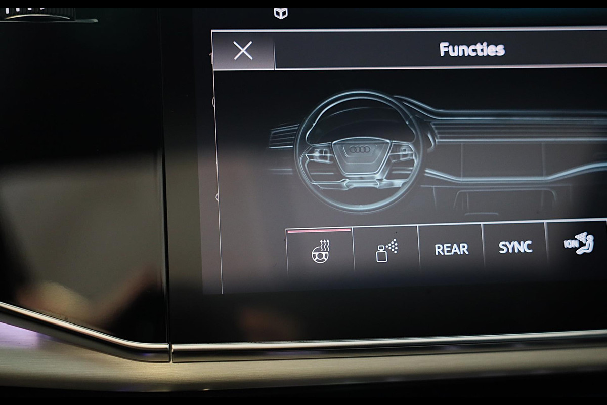 Hij oogt indrukwekkend en sportief, deze Audi Q8. Trap het gaspedaal in en voel de geweldige acceleratie van de zescilinder motor van deze sportwagen. Een fraai lederen interieur, dat in daglicht baadt dankzij het elektrisch bediende glazen panorama dak. En voor 'handsfree' in- en uitladen vindt u aan de achterzijde de elektrisch bedienbare achterklep. Zelfs op de koudste dagen zorgen de stoelverwarming met massagefunctie, stuurverwarming en verwarmbare achterbank voor een comfortabele rijervaring. U past de stoelen moeiteloos aan, ze zijn elektrisch in te stellen en hebben bovendien een geheugen. Niet alleen u zelf geniet van de luchtvering; ook uw banden en remmen hebben veel minder te verduren. En de ergonomische comfortstoelen zorgen voor volmaakte ontspanning. Als u eenmaal kennis hebt gemaakt met het elektrische cabriodak dan weet u het zeker: bij deze auto is over elk detail nagedacht. Xenonverlichting staat borg voor helderwit licht en een krachtige lichtbundel. De uitmonstering van deze auto wordt gecompleteerd door onder meer 20 inch lichtmetalen velgen, LED koplampen, warmtewerend glas, zwarte hemelbekleding, LED-achterlichten en verstelbare lendensteunen.