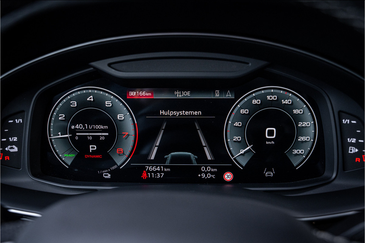 Het exterieur onderscheidt zich door de Competition-uitvoering, die de Q8 een extra sportieve en prominente uitstraling geeft. De grote Singleframe-grille, agressieve lijnen, brede wielkasten en dynamische lichtsignatuur zorgen voor een moderne en zelfverzekerde look. Dankzij de perfecte balans tussen elegantie en kracht is dit een SUV die opvalt zonder schreeuwerig te worden — precies zoals je het van een topklasse Audi mag verwachten.