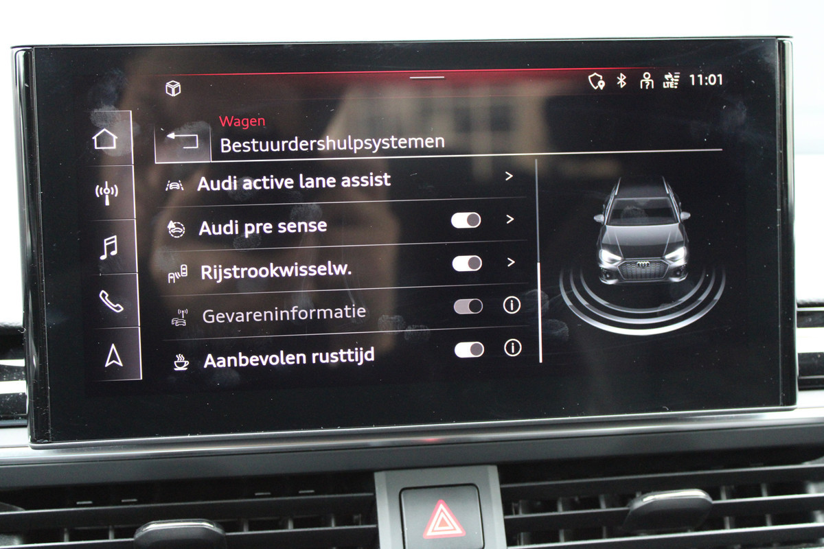Met de nieuwste technologieën aan boord is deze Audi in staat om zelf te reageren op potentieel gevaarlijke situaties op de weg. Blik permanent op de weg en toch belangrijke functies in beeld? De head-up display projecteert rij-informatie op de voorruit! Belangrijk voor uw veiligheid en die van uw passagiers is de verkeersbord-detectie in deze auto. Het Lane-keeping systeem garandeert dat u zich niet onverhoeds buiten de lijnen van de rijstrook begeeft. Met voorzieningen als dodehoekdetectie, forward collision warning system, hill hold functie, brake assist en bandenspanningcontrolesysteem, bent u altijd veilig onderweg.