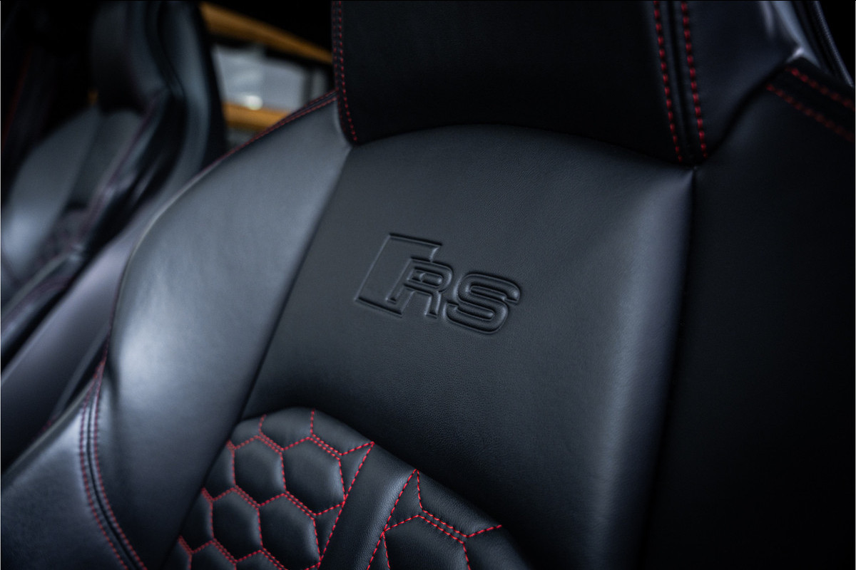 Binnenin word je verwelkomd door een hoogwaardige en sportief aangeklede cockpit. De bekende Audi-afwerking, RS-details, digitale tellers, sportstoelen en premium materialen zorgen voor een omgeving waarin luxe en dynamiek naadloos samenkomen. Alles voelt solide, modern en volledig gericht op de bestuurder.