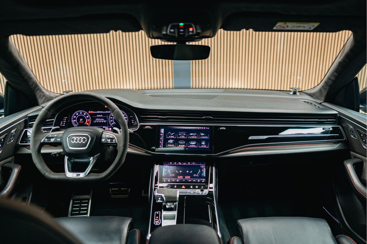 Audi RSQ8 in de kleur Deep Black Pearl, een dikke SUV met supercar-prestaties en een strakke uitstraling!