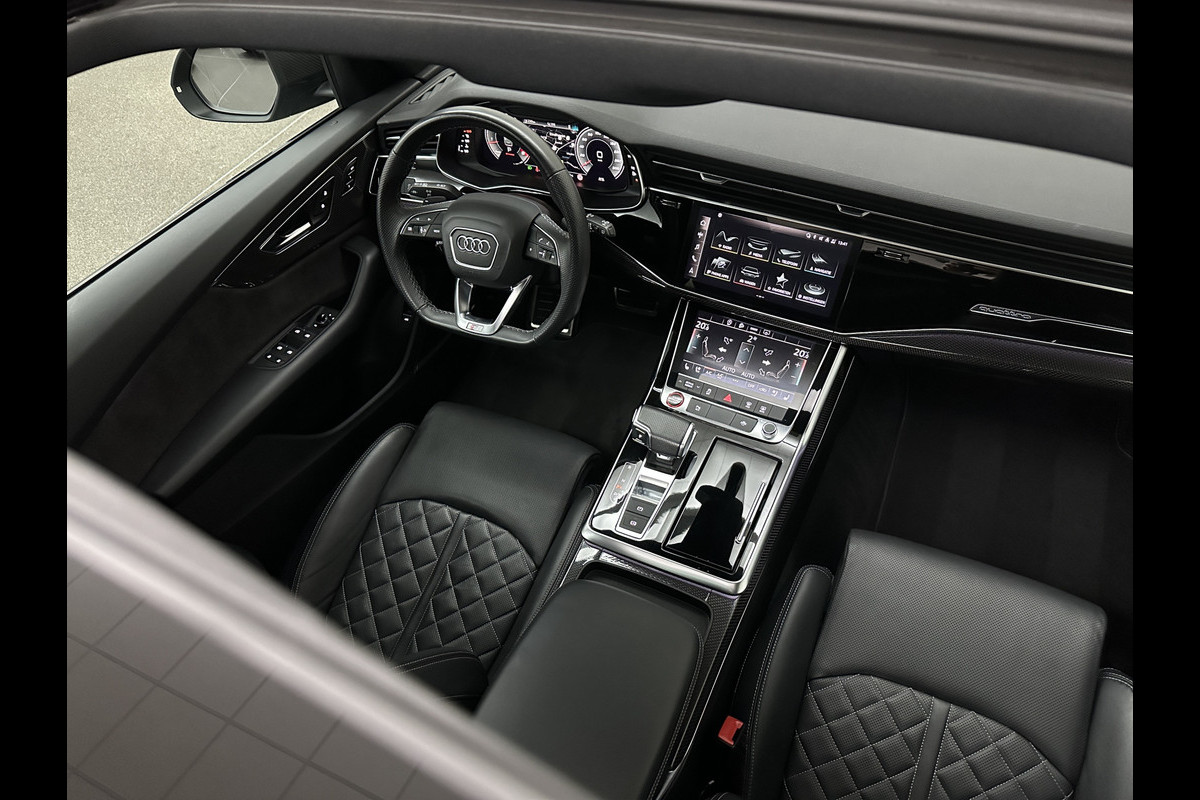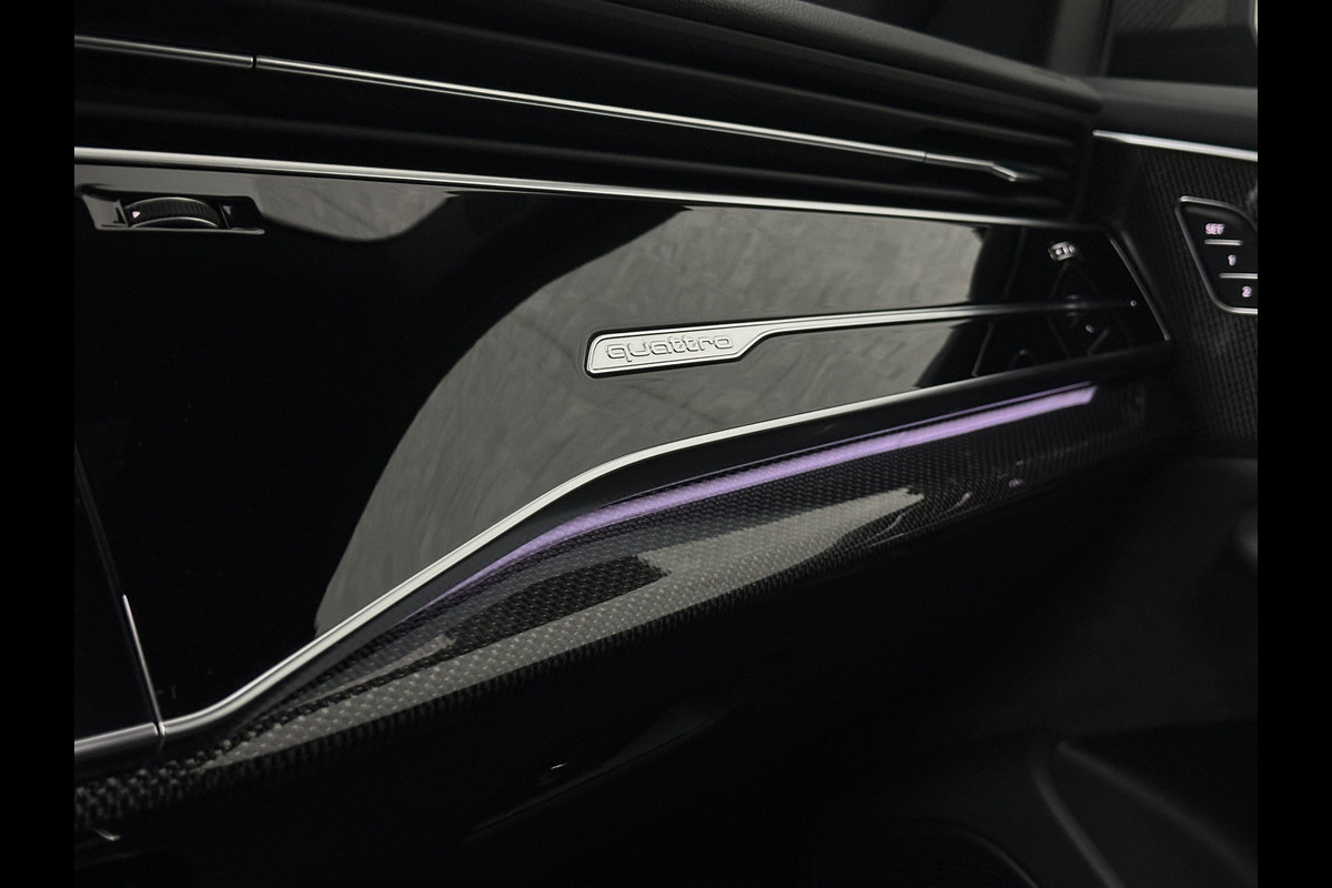 Audi SQ8 Q8 RSQ8 4.0 V8 | RS-Stoelen | Panorama | Massage | Ventilatie | 23'' | B&O Sound | Trekhaak | Bovag Garantie | Carbon | Luchtvering | Black-Optic | Nw.Pr, 220733,= | Memory | Leder | Matrix-LED | Carplay | 57800,= ex bpm en btw export | BTW Auto 81300,= ex btw.