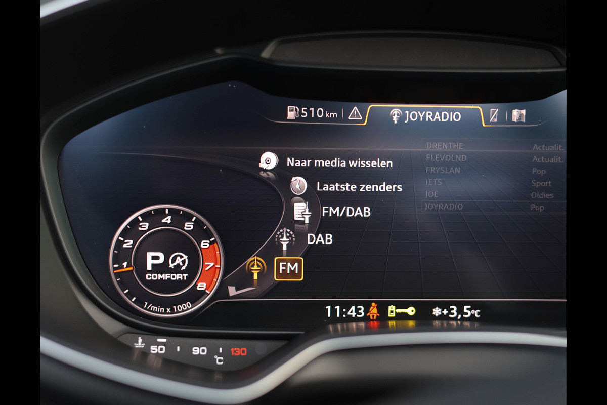 Ook het optiepakket is uitstekend samengesteld. De Audi TT was een van de eerste modellen waarbij het centrale display werd weggelaten, wat resulteert in een strak en minimalistisch dashboard. Alle infotainmentfuncties worden bediend via het display achter het stuurwiel, wat zorgt voor rust en focus tijdens het rijden. Daarnaast is de auto voorzien van stoelverwarming, DAB radio, Audi Phone Box en diverse andere extra’s die het geheel compleet maken.