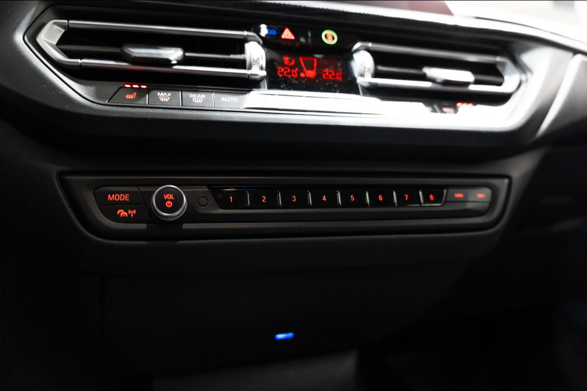 Het personaliseren van uw cockpitinterface is mogelijk met het digitale dashboard in deze auto. Met de achteruitrijcamera ziet u precies wat er achter de auto gebeurt. De speciale app verbindt met Connected Services, die de status van vitale functies bijhoudt en waarschuwt als u bijvoorbeeld moet tanken, de bandenspanning moet controleren of olie moet bijvullen. Voor wie hoge eisen stelt aan geluid en akoestiek, is deze auto voorzien van een high performance audiosysteem. Omdat u nu eenmaal niet overal ogen heeft, is deze BMW 1-serie voorzien van een achteropkomend verkeer waarschuwing die registreert wanneer de afstand tot uw achterligger te krap is. Ook dashboard met spraakbediening, navigatiesysteem met harde schijf, electronic climate control, DAB ontvangst, regensensor en cruise control zijn aan boord.