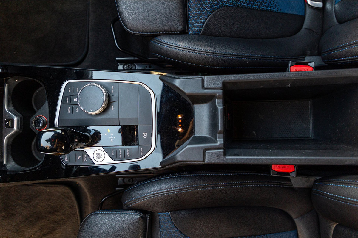 Zeer nette en sportieve BMW 1-serie 118i High Executive M-Sport uit 2021 in stijlvol zwart. Deze luxe hatchback combineert comfort, prestaties en technologie op topniveau.
